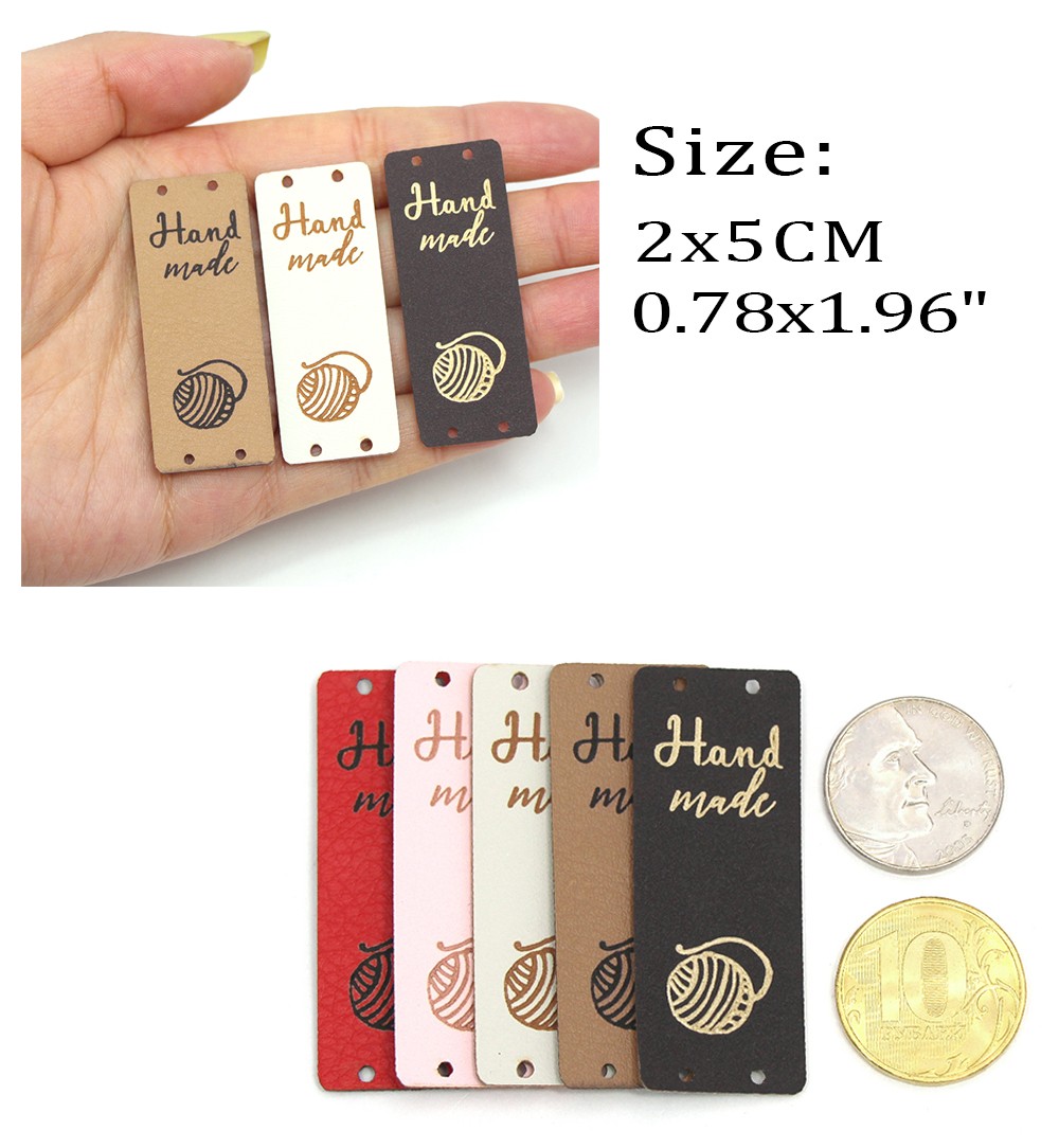 ملصقات جلدية مصنوعة يدويًا مع كرة من خيوط الغزل للملابس ، وعلامات للقبعات ، وإكسسوارات الخياطة المحبوكة وهدية افعلها بنفسك ، 20 قطعة