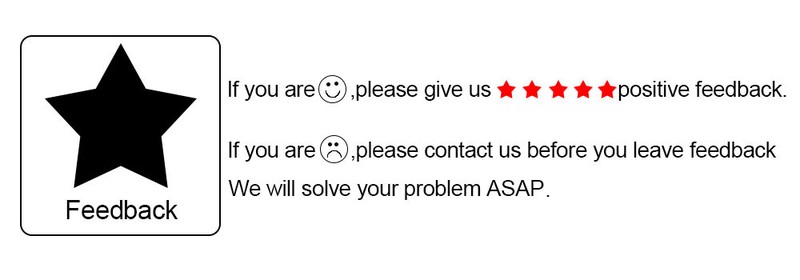 3. تعليقك مهم جداً بالنسبة لنا. إذا كنت راضيًا عن الشراء وخدمتنا الإجمالية ، فيرجى أخذ دقيقة واحدة لترك تعليقات إيجابية لنا.
