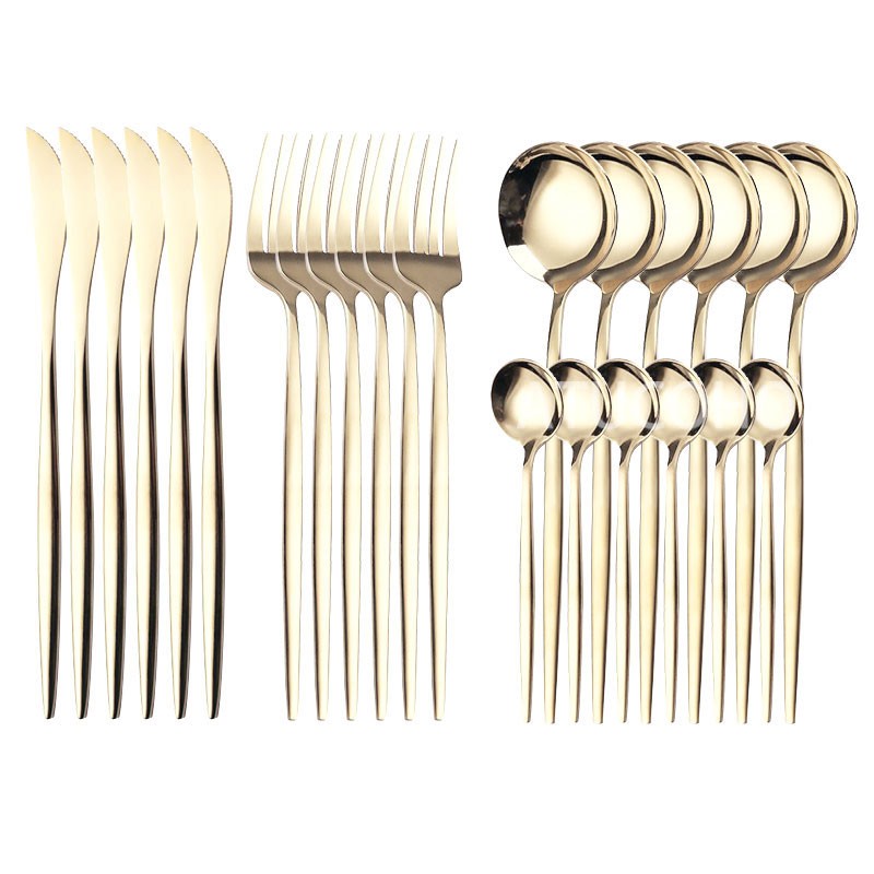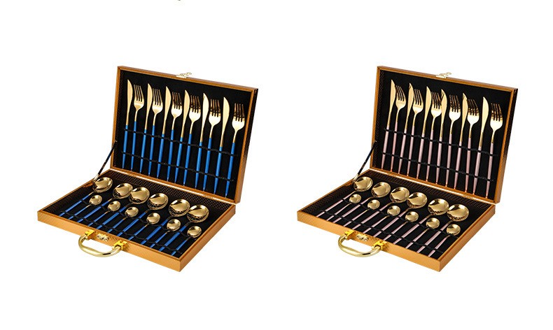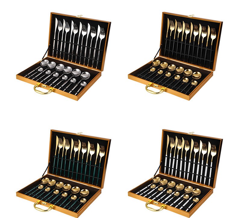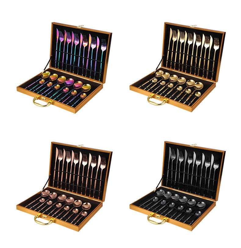 24 قطعة مجموعة أدوات المائدة المقاوم للصدأ سكين شوكة ملعقة أدوات المائدة مجموعة أدوات المائدة الذهب هدية صندوق أواني الطعام المحمولة غسالة صحون أدوات المطبخ