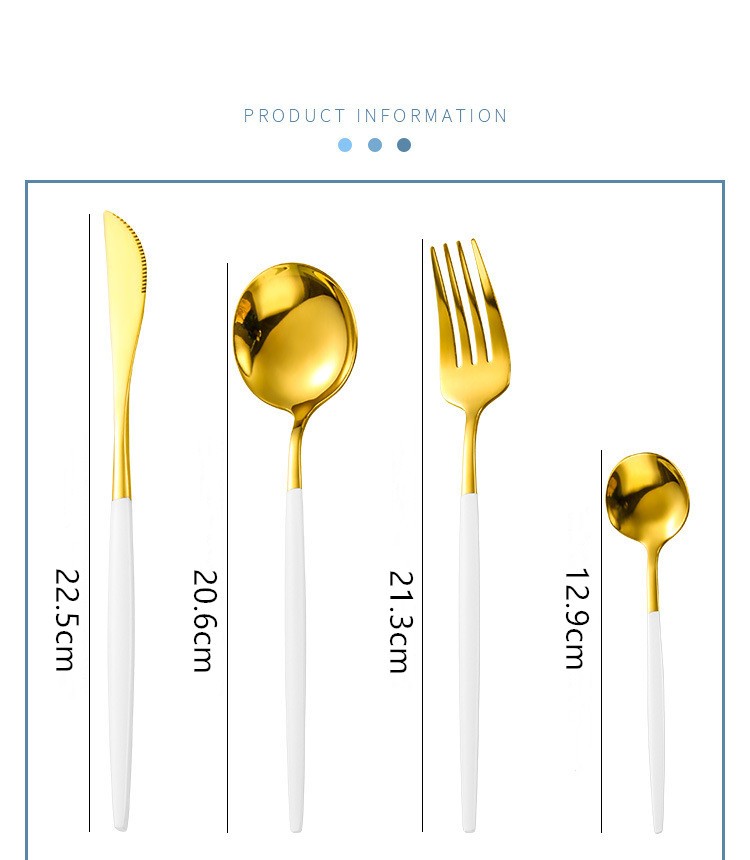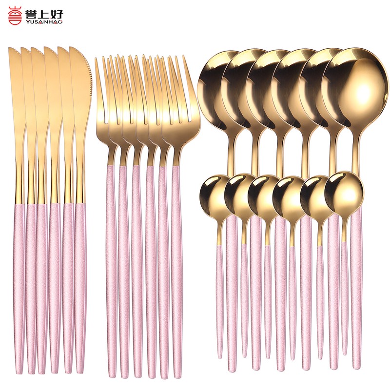 أدوات المائدة مصنوعة من الفولاذ المقاوم للصدأ عالي الجودة ، والتي هي دائمة ودائمة.