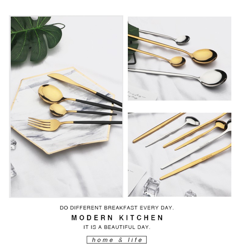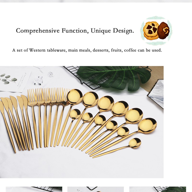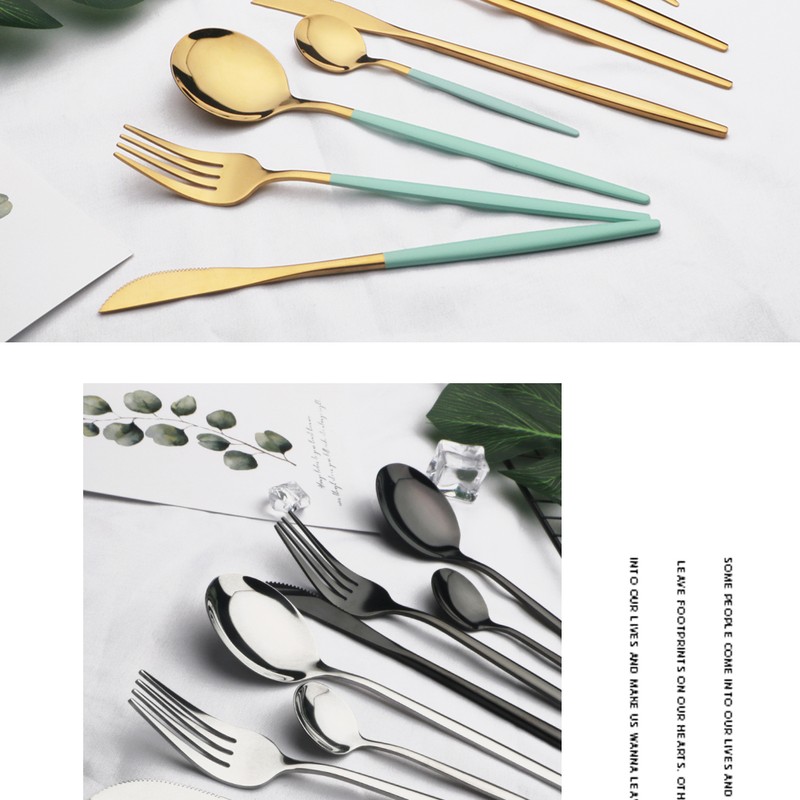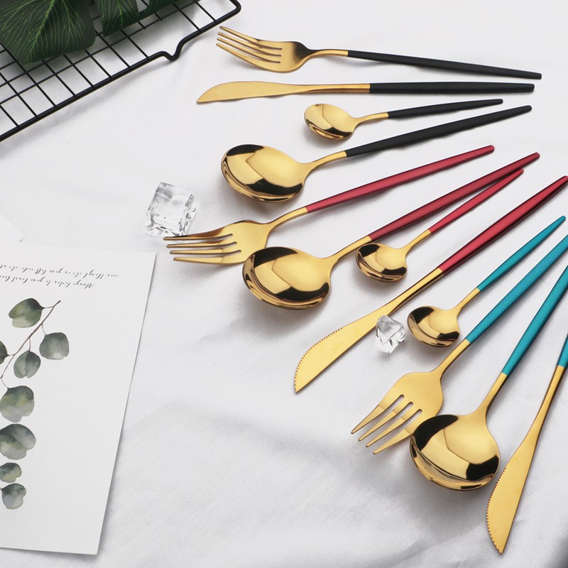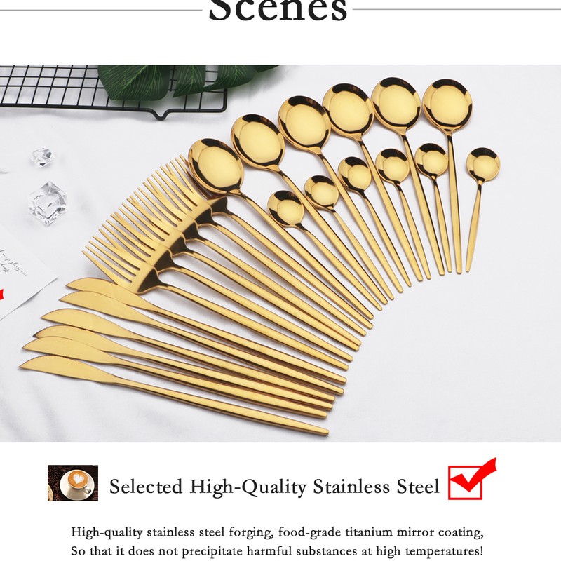 24 قطعة الذهب أواني الطعام مجموعة المقاوم للصدأ أدوات مائدة من الفولاذ مجموعة سكاكين شوكة ملعقة طقم ملاعق غسالة صحون آمنة الفضيات مجموعة أدوات المائدة