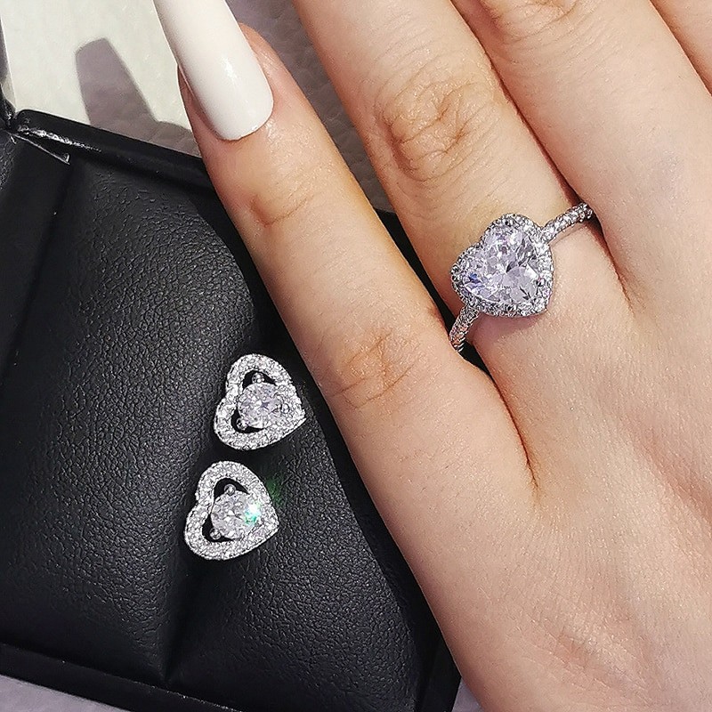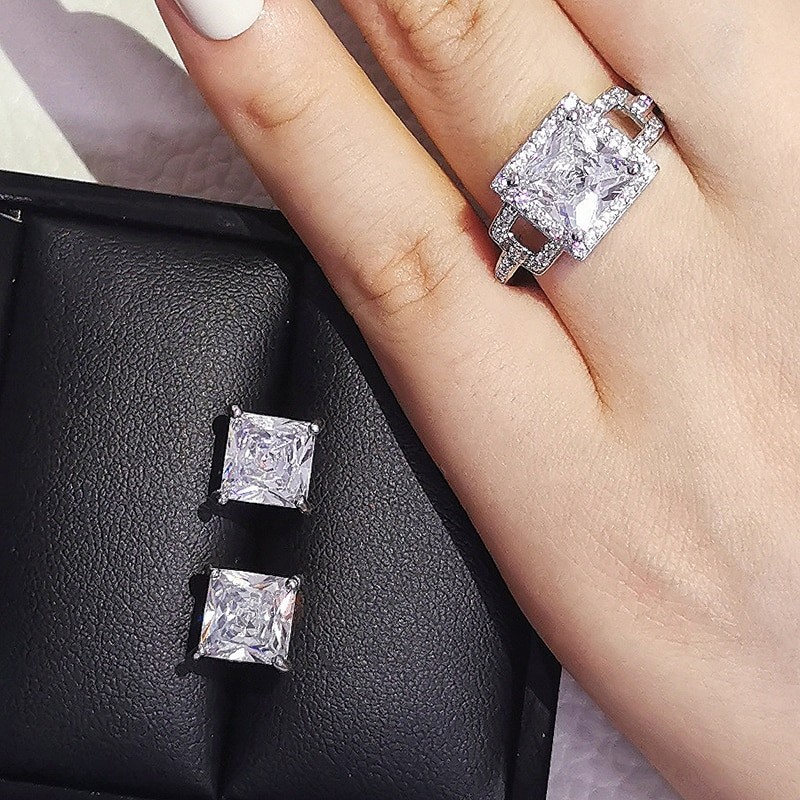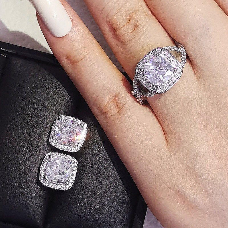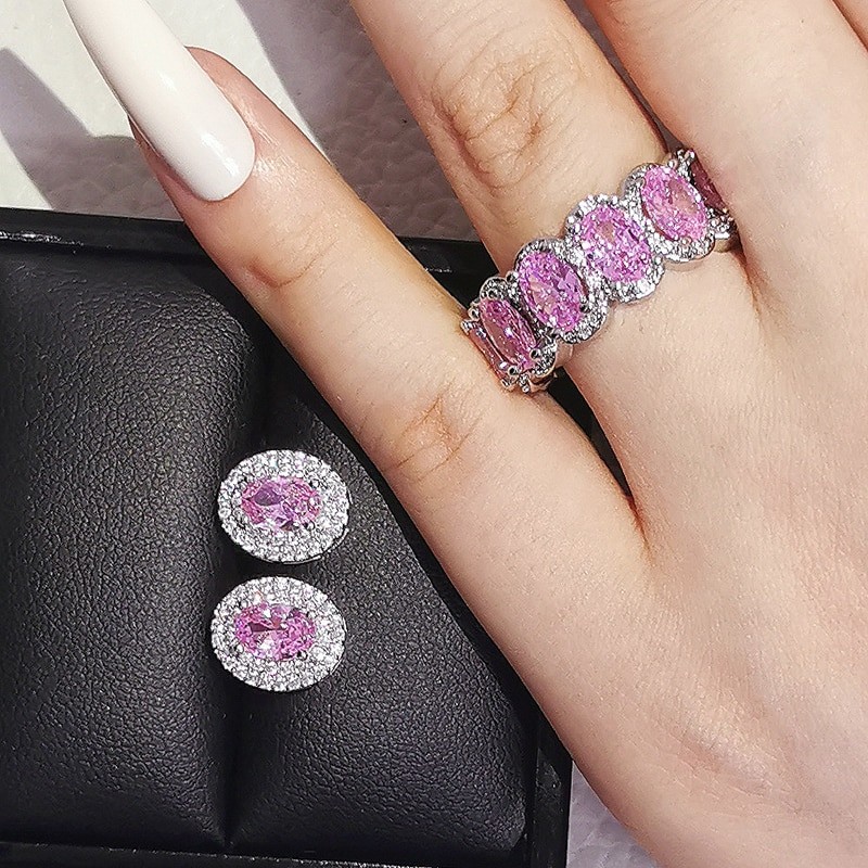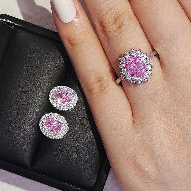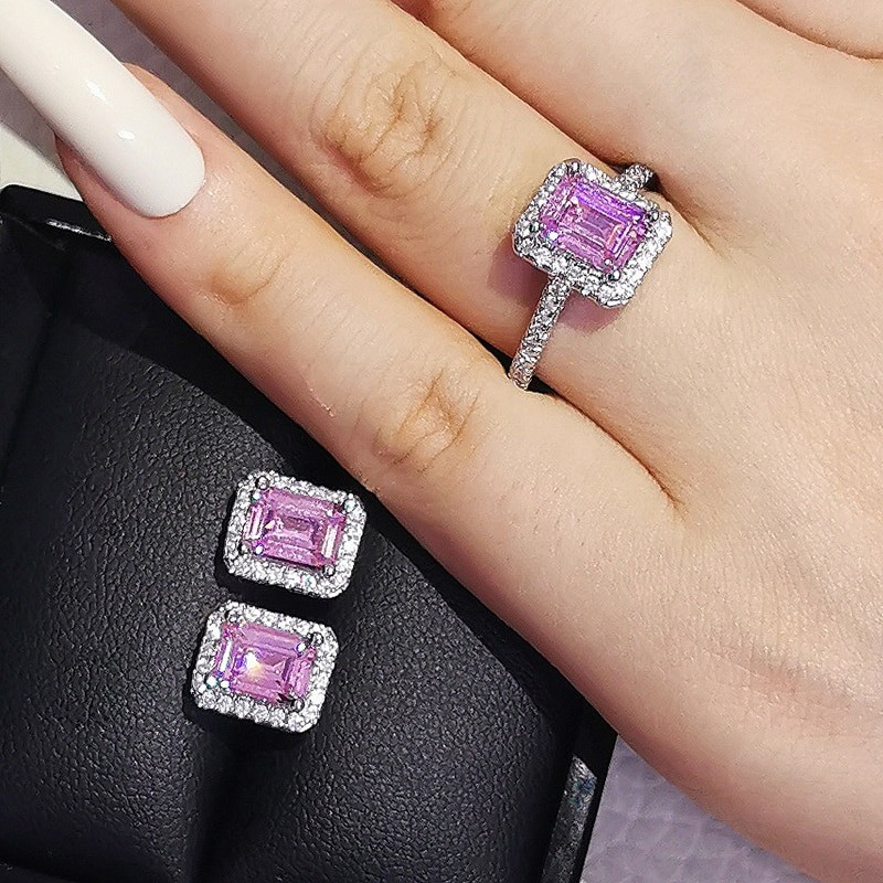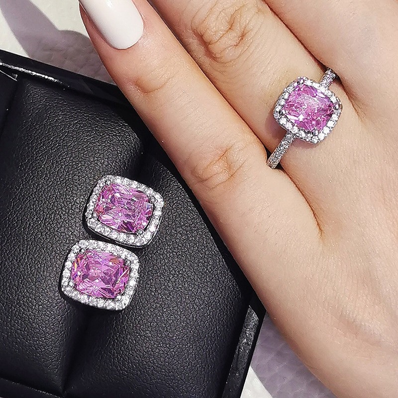 2 قطعة لكل حزمة الوردي الأسود الأخضر 925 فضة طقم مجوهرات لل زفاف النساء خاتم الخطوبة قرط الاذن المرصع للحزب هدية Z10