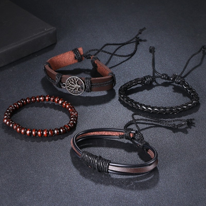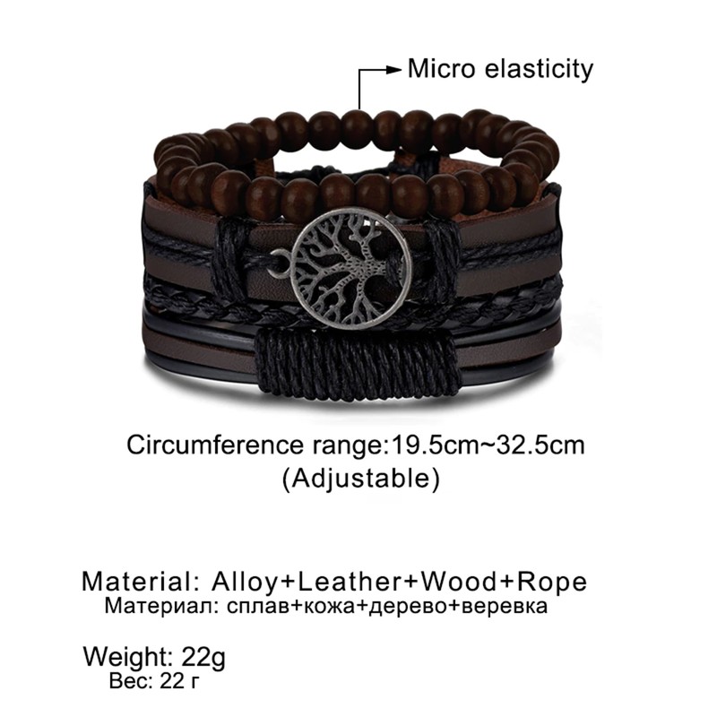 Ifmia 3/4 قطعة/المجموعة مزين التفاف أساور جلدية للرجال خمر الحياة شجرة الدفة سحر خرزات خشبية العرقية القبلية الأساور