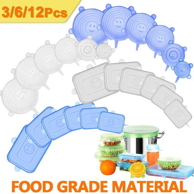 3/6/12 قطعة العالمي أغطية سيليكون أدوات سيليكون لإعداد الطعام غطاء غطاء ل تجهيزات المطابخ وعاء الميكروويف غطاء تمتد الأغطية الغذاء التفاف السلطانية سدادة