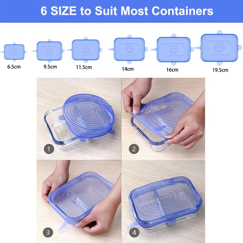 1.3/6/12 قطعة غطاء سيليكون المطبخ. يمكن أن تمتد لتناسب مجموعة متنوعة من الأحجام المختلفة.