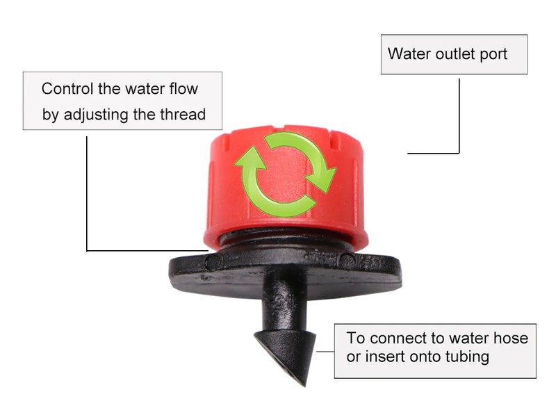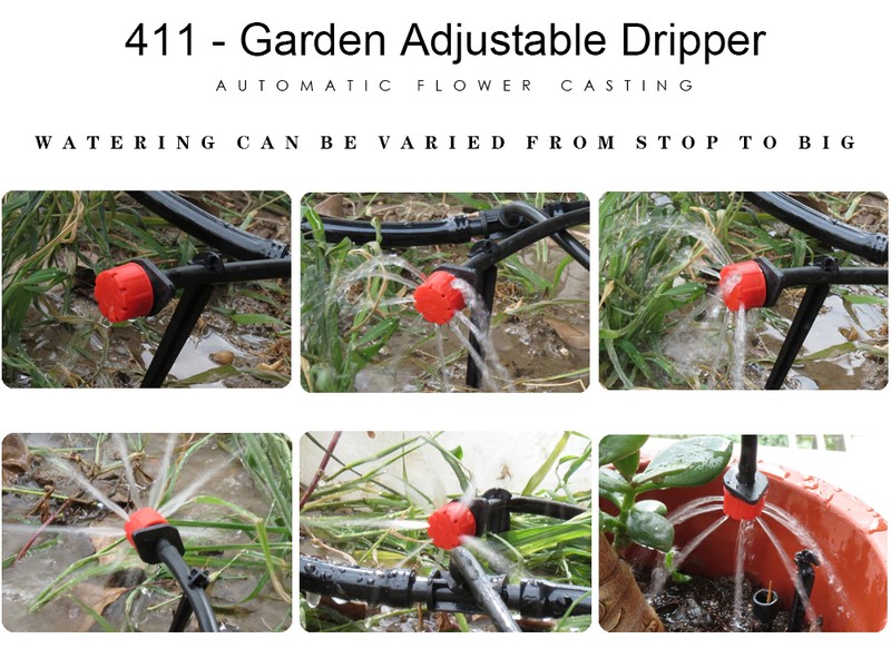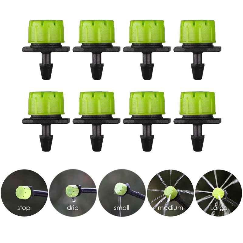 -المنقط قابل للتعديل: 8-منفذ. قابل للتعديل-تعديل التدفق يعني أن تكون مسقاة متنوعة من رذاذ كبير ، إلى نمط تيار لطيف إلى عمل بالتنقيط أو إيقاف تماما. تحكم بسيط في غطاء طرف الإصبع لتعديل التدفق.