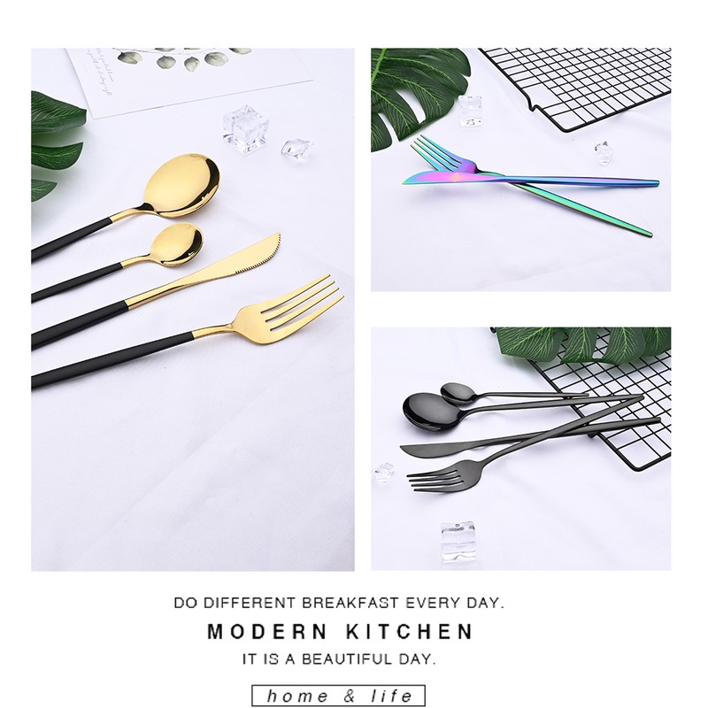 4 قطعة الذهب أواني الطعام مجموعة الفولاذ المقاوم للصدأ الأسود أواني الطعام مجموعة سكين شوكة ملعقة ملعقة السكاكين المطبخ الفضيات مجموعة