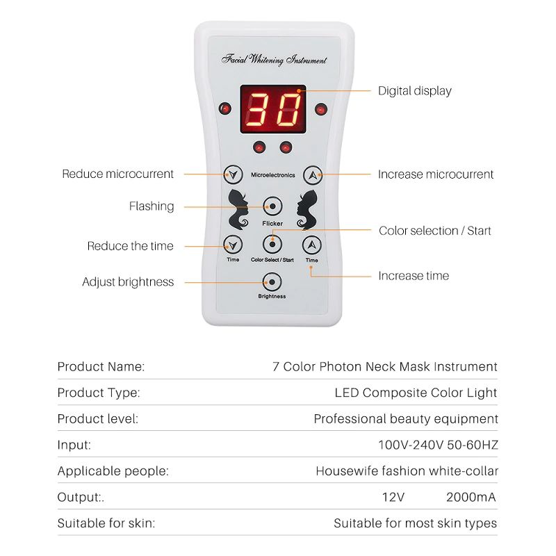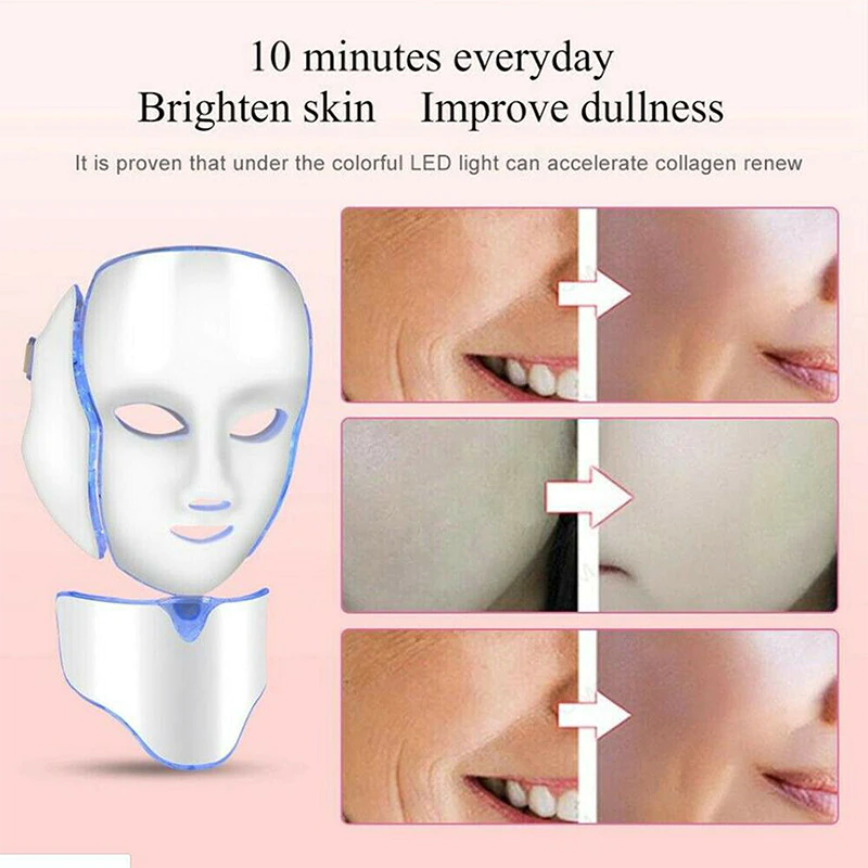 7 ألوان Led قناع الوجه مع الرقبة تجديد الجلد مكافحة حب الشباب التجاعيد علاج تجميلي العلاج الفوتون الكورية صالون المنزل