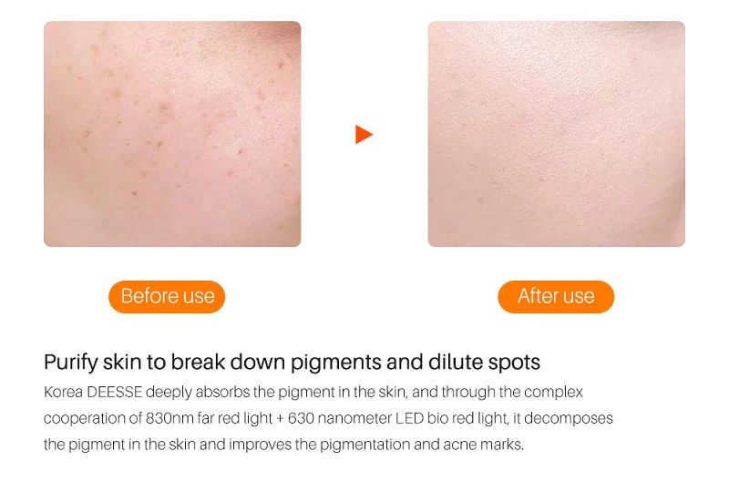 الضوء الأحمر: تبييض بقعة شاحب ، الجلد العطاء ومكافحة التجاعيد ، وإصلاح الجلد التالف ، على نحو سلس التجاعيد الدقيقة ، يتقلص المسام ، تضخم الكولاجين.
