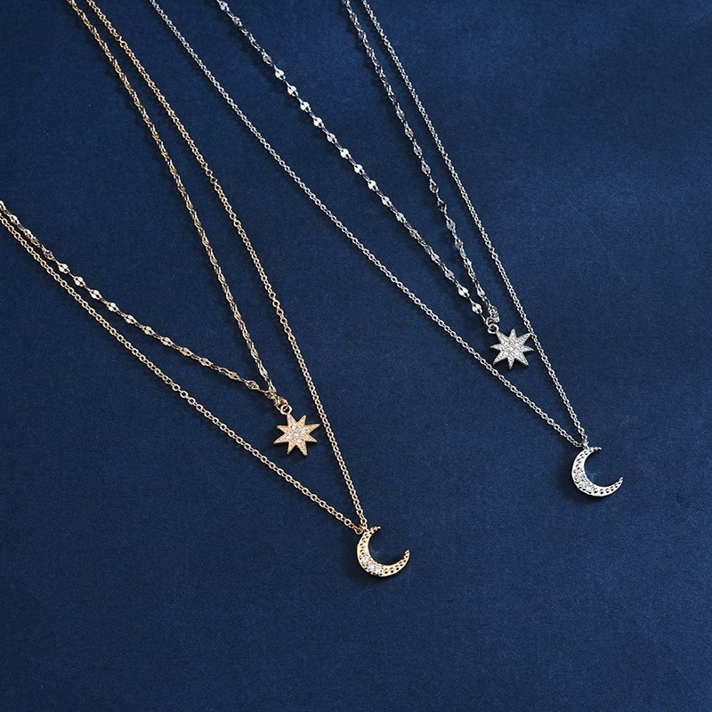 925 فضة بسيطة نجوم طبقة مزدوجة المختنق لامعة الزركون القمر المعلقات القلائد للنساء هدية غرامة مجوهرات Nk092