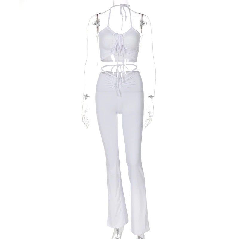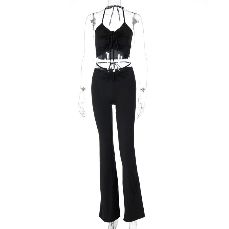 Allنيون Y2K الشارع الشهير مثير ضمادة الأزرق المشارك كلمات الدعاوى 2000S موضة الرسوم الزاهية الرسن العلوي وارتفاع الخصر مضيئة السراويل 2 قطعة مجموعة