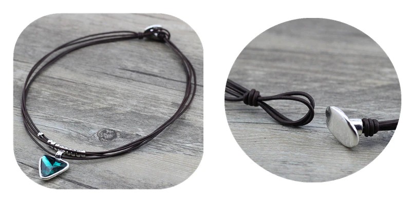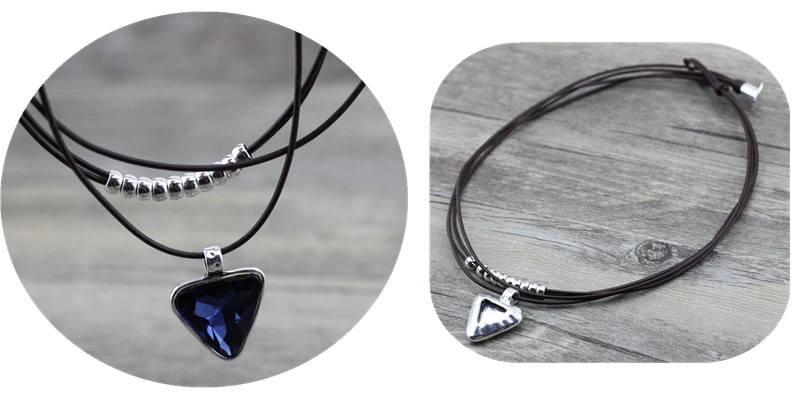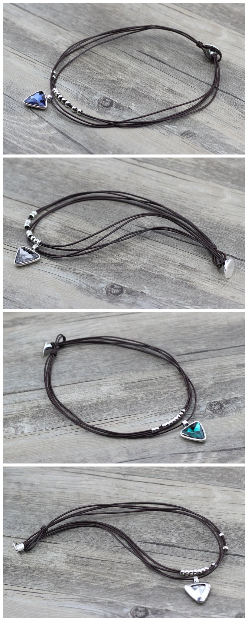 Anslow جديد مجوهرات الأزياء الساخن خمر الرجعية Multiliyer جلدية مثلث كريستال قلادة المختنق قلادة رخيصة الثمن Low 0018An