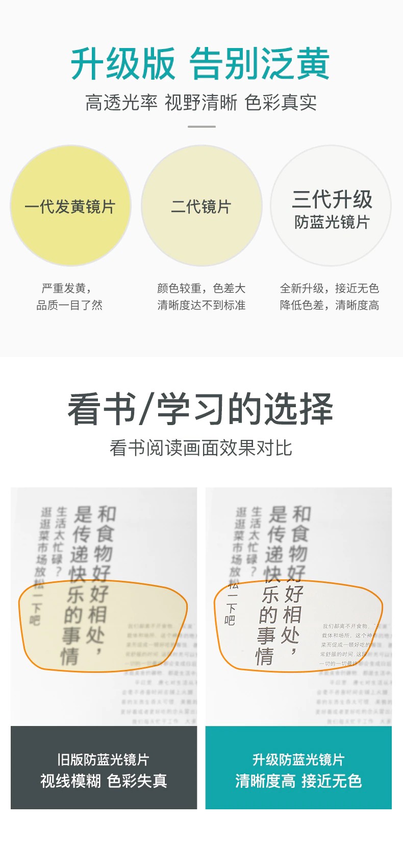 ترقية الضوء الأزرق المضاد ، وإضعاف وحماية الضوء الضار المنبعث من الشاشة ، وحماية نظارات الأطفال.