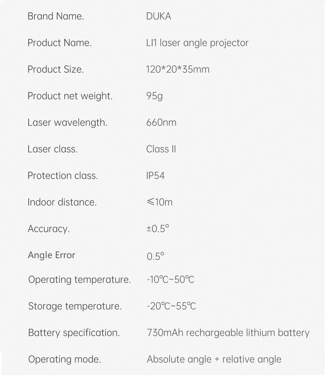 LI1 هو مقياس زاوية للاستخدام المنزلي أو المكتبي ، وليس مقياس مستوى خاص في السوق. لا يحتوي صب خط الليزر على وظيفة التسوية التلقائية. خط الصب لديه خطأ زاوية تم شرحه علنا. يرجى إصدار حكم صارم قبل الشراء.