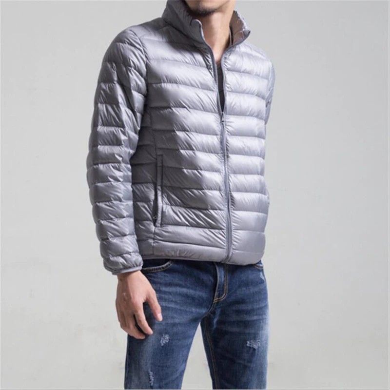معطف شتوي رجالي ، ياقة منتصبة ، خفيف للغاية, جاكيت خارجي محمول مقاوم للرياح أبيض ، 6Xl