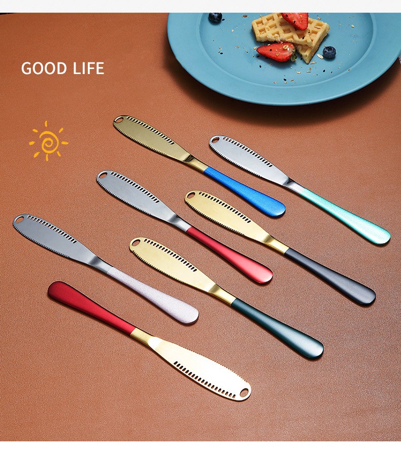 سكين الزبد ساعة فولاذية مقاومة للصدأ متعددة الوظائف الجبن الخبز ستيك سكين مع ثقب مسننة الذهب سكين أدوات المائدة المنزلية مجموعة