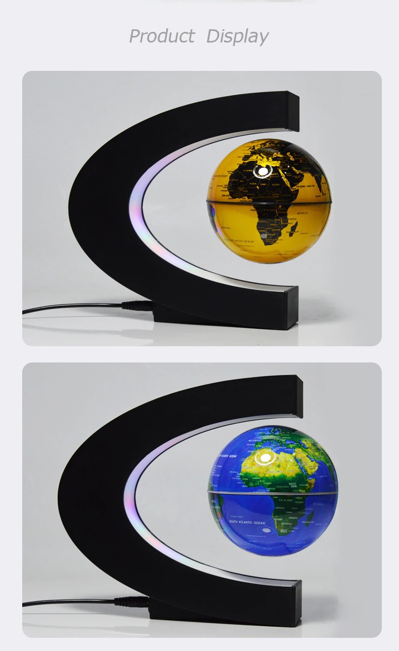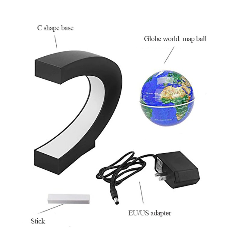C شكل المغنطيسي العائمة غلوب خريطة العالم مع مصباح ليد هدايا مدرسة معدات التدريس منضدة المكتب المنزلي الديكور