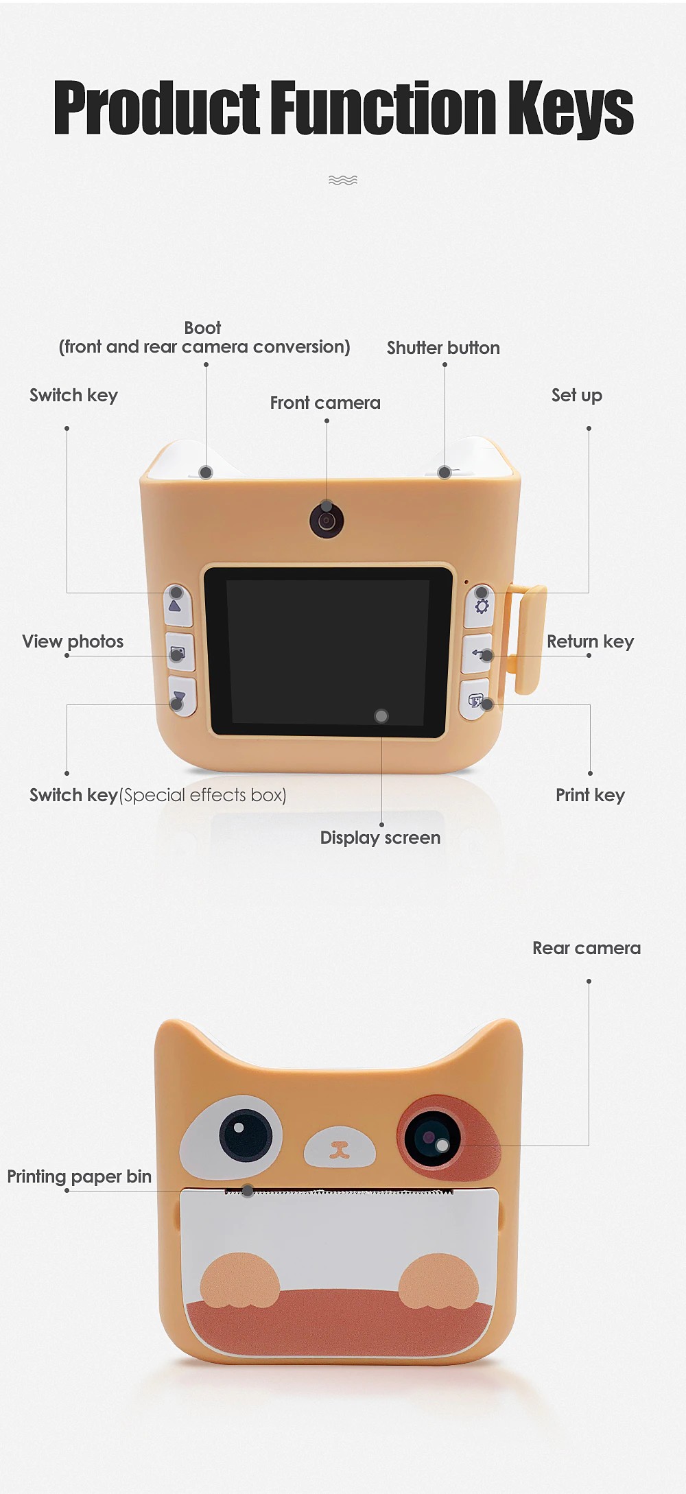 3. يمكن للكاميرا الطباعة مع نوعين من الورق: ورق حراري ، أو ملصق. الورق الحراري هو نوع واحد من الورق الحساس للحرارة المستخدم في الطابعات الحرارية. الورق الحراري المطبوع من الكاميرا سيكون اللون الأسود والأبيض. إذا تمت طباعته مع الملصق ، يمكنك لصق الصورة المطبوعة على هذا المنتج ، وهو أيضا اللون الأسود والأبيض.