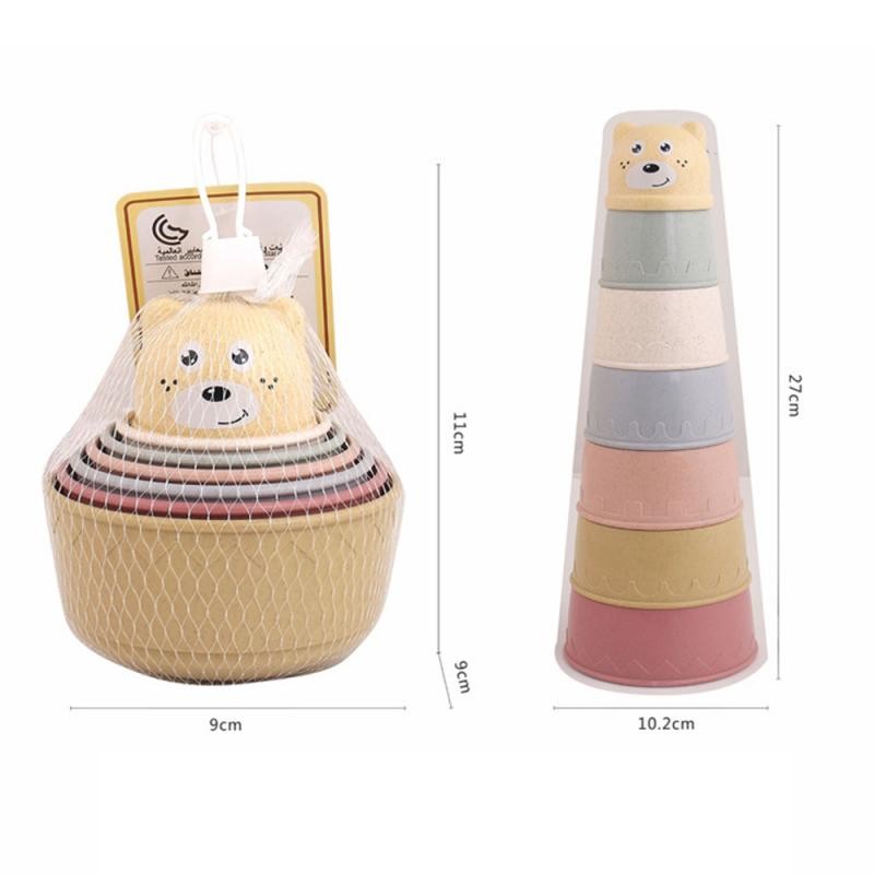 حجم كل حلقة مختلفة. يمكن للطفل التمييز بين حجم الحلقة والتعرف على الألوان المختلفة في عملية اللعب.