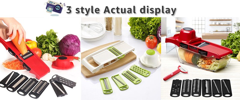 2-مساعد المطبخ: هذا القطاعة يدوية الصنع مصنوعة من الفولاذ المقاوم للصدأ الغذاء الصف و BPA خالية من البلاستيك ABS العروض ، ويوفر جميع وظائف الأجهزة متعددة مع شفرات الفولاذ المقاوم للتغيير. هذه الشفرات يمكن أن تقطع من خلال جميع أنواع الخضار ، الجبن صريف ، تقطيع البطاطس وقطع الفواكه ، حتى يمكن أن تخلق الخضروات مثل عجينة أو البطاطا المهروسة.