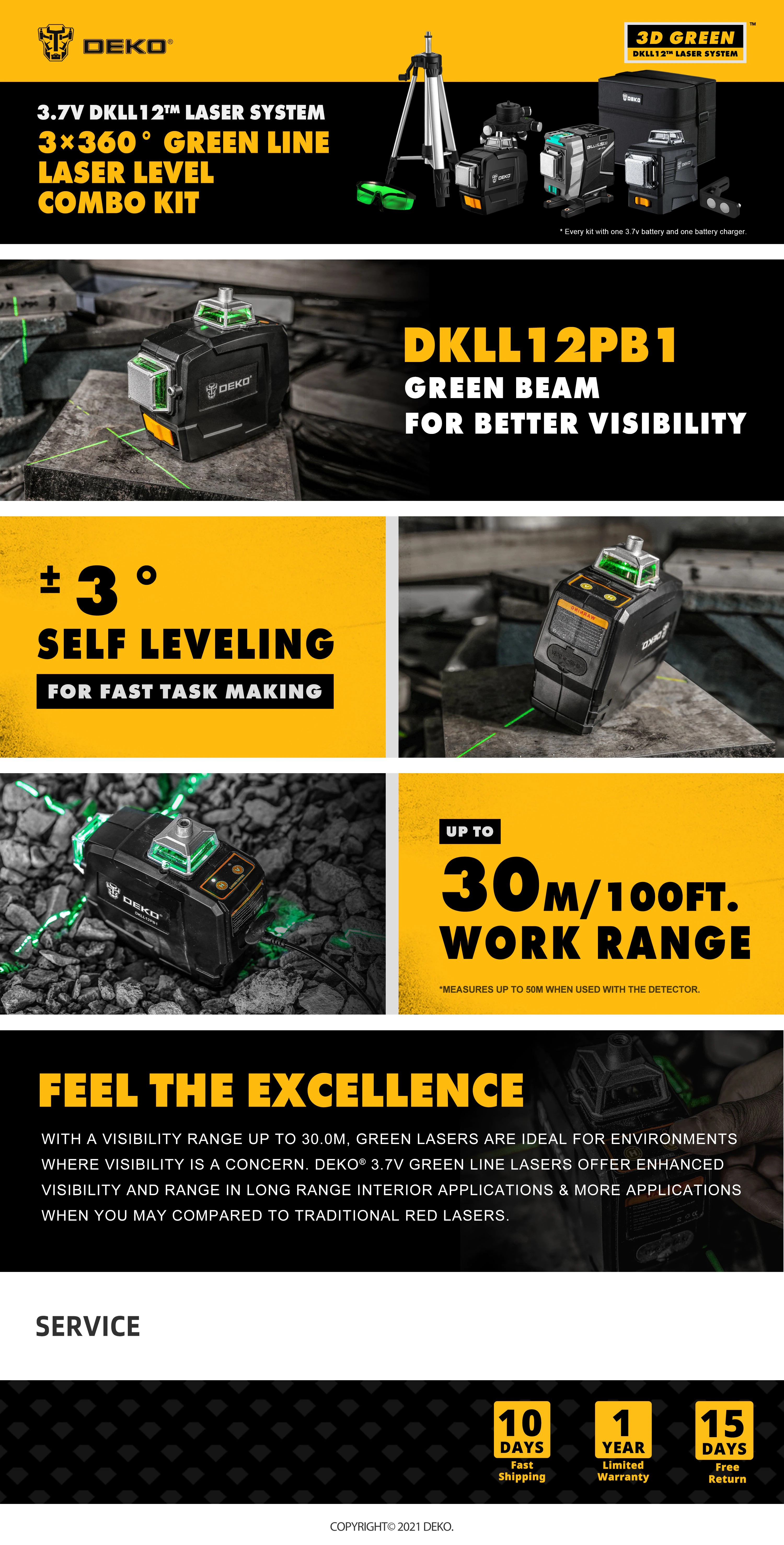 سلسلة Deko Dkll12 أدوات بناء احترافية لمستوى الليزر 12 خط أخضر للتسوية الذاتية 360 4D حامل ثلاثي القوائم القوي للقياس