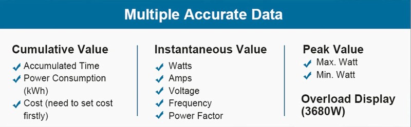 مدى قياس الطاقة: 230VAC/16A/50Hz/3680W (EU)