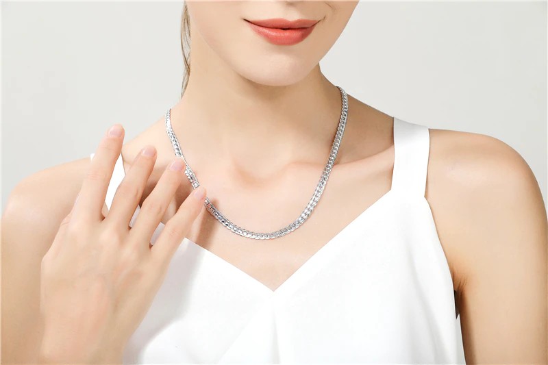 DOTEFFIL 925 فضة 6 مللي متر كامل جانبية قلادة 16/18/20/22/24 بوصة سلسلة للمرأة الرجال موضة الزفاف خطوبة مجوهرات
