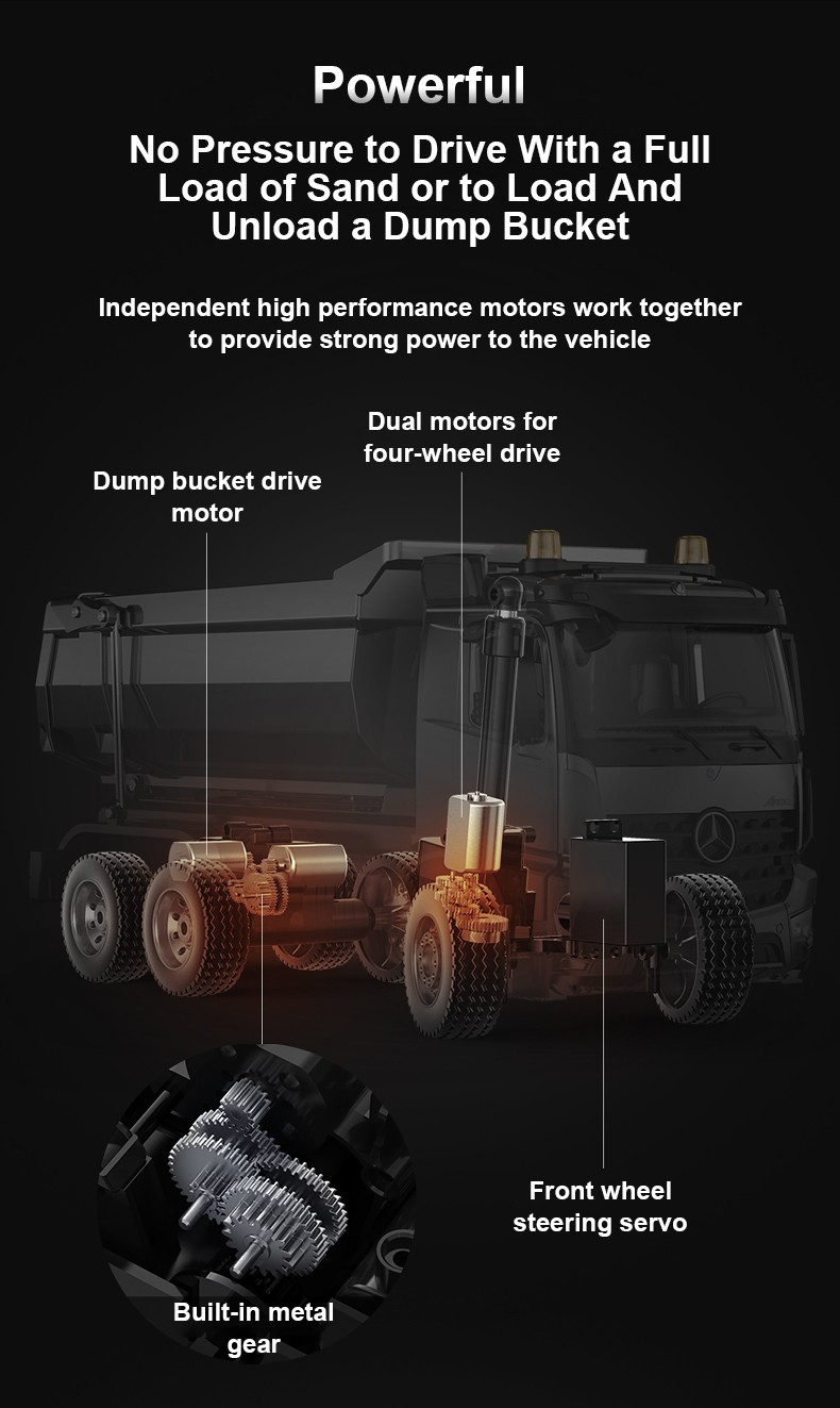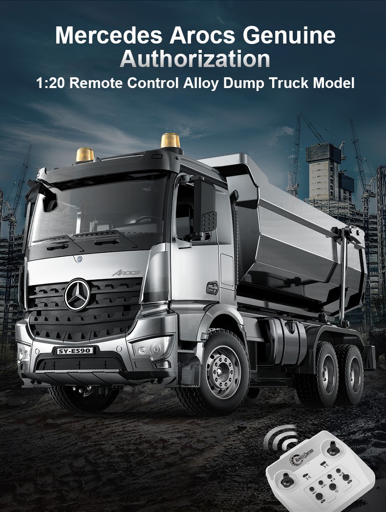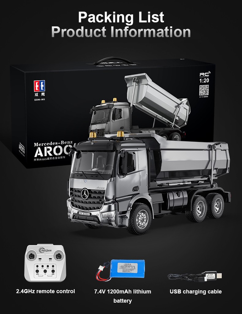 مزدوجة E 1/20 E590 سبيكة مركبة يتم التحكم بها عن بُعد 2.4G سيارة التحكم عن بعد كاتربيلر نموذج شاحنات تفريغ السيارات جرار راديو قلابة لعبة الأولاد