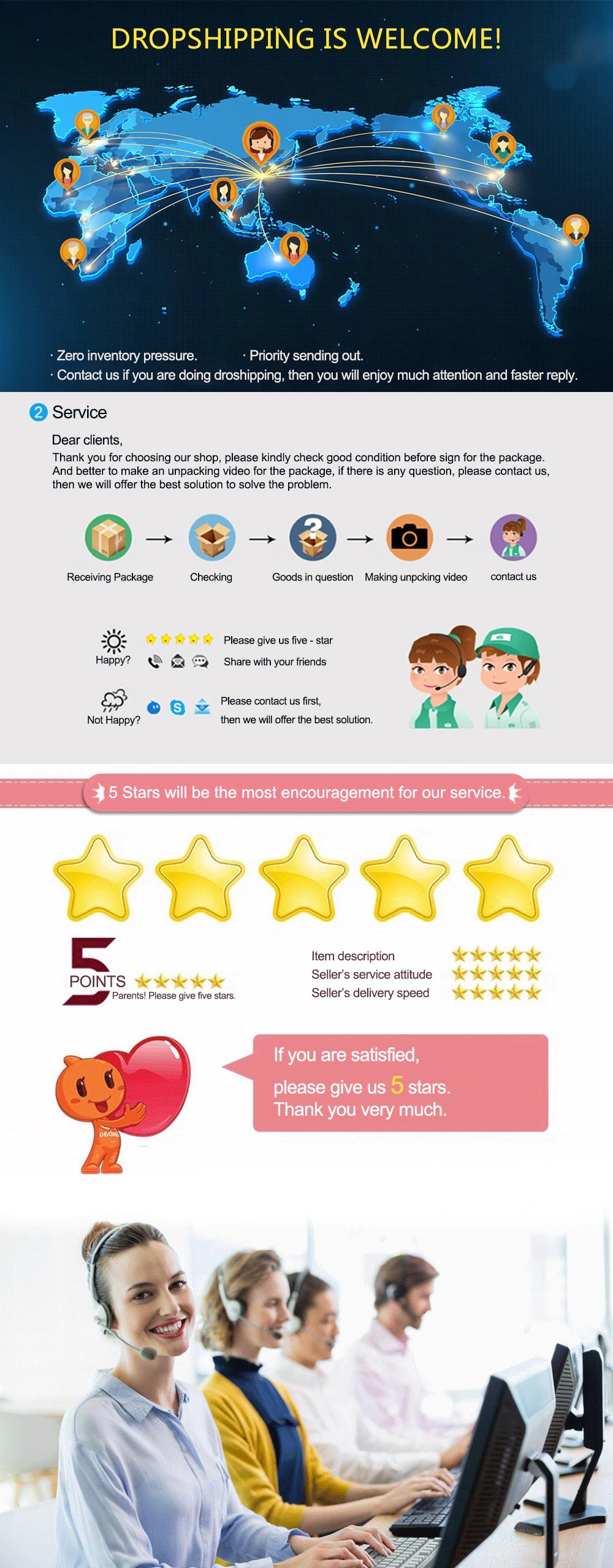 سوف نرسل الطلب في أقرب وقت ممكن ، عادة في 1-3 أيام عمل ، وإذا كنت بحاجة إلى أي مساعدة ، لا تتردد في الاتصال بنا ، نحن دائما هنا بالنسبة لك.