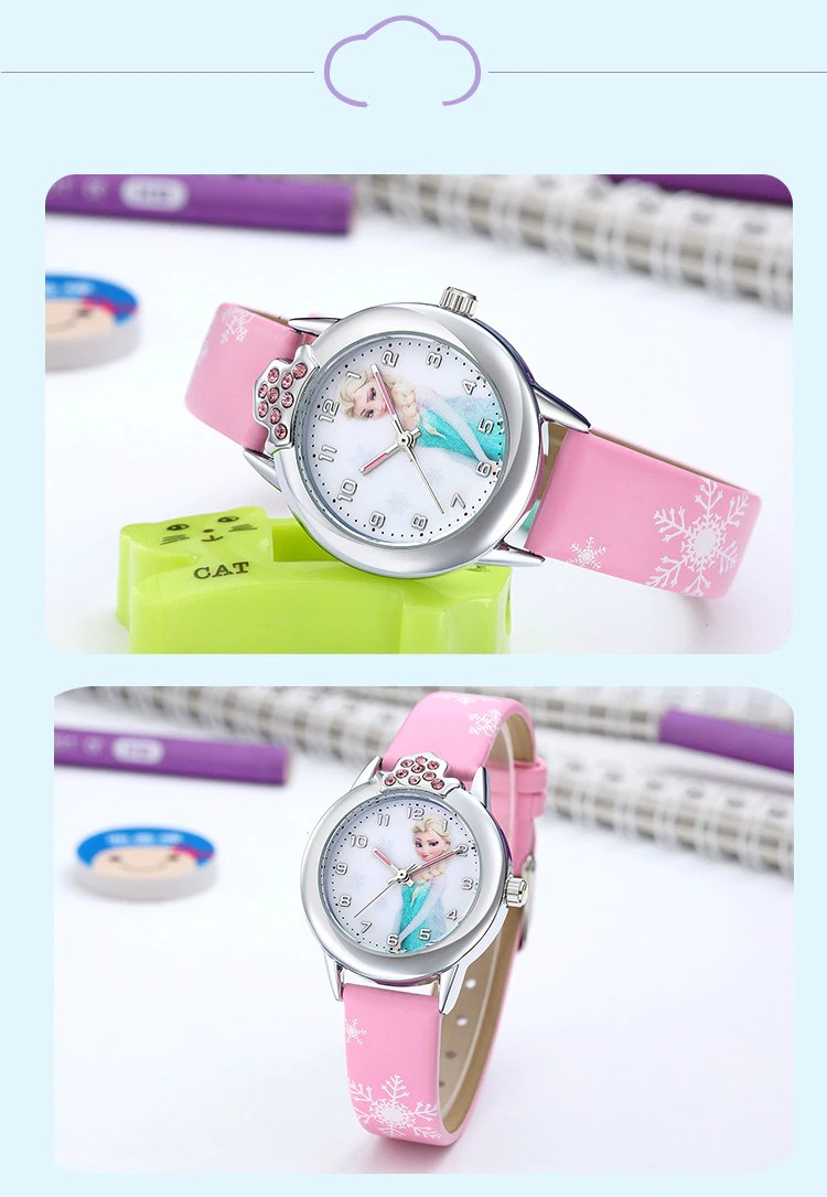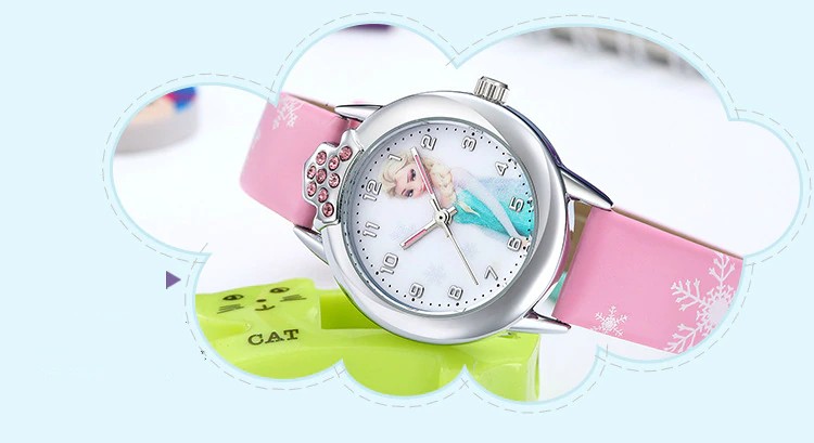 إلسا مشاهدة الفتيات إلسا الأميرة الاطفال الساعات حزام من الجلد لطيف للأطفال الكرتون ساعات المعصم هدايا للأطفال فتاة المجمدة على مدار الساعة