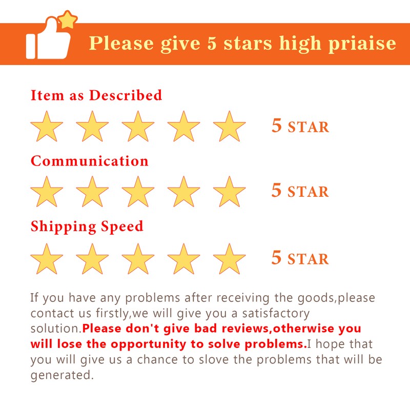 نريد رضاك بنسبة 100%. إذا لم تشعر بالرضا عن المنتجات التي تلقيتها منا ، ويختلف المنتج عن الوصف. يرجى الاتصال بخدمة العملاء. يتم تقديم رد أو استبدال وفقا لذلك.