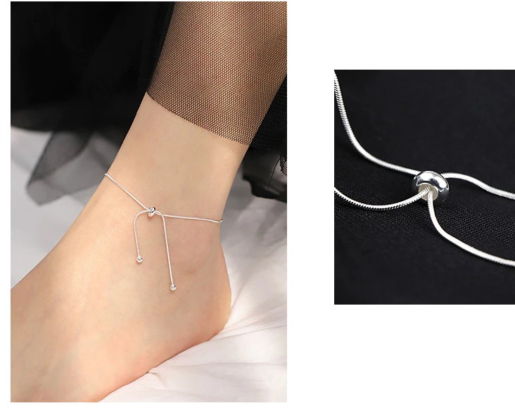 موضة مجوهرات راقية 925 فضة ثعبان سلسلة القوس عقدة الخلخال قابل للتعديل النساء لطيف اكسسوارات