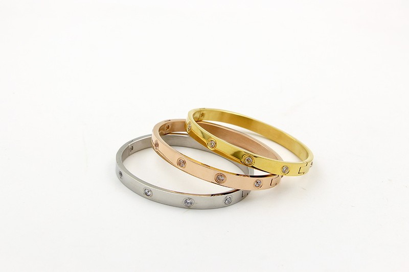 موضة الحب مجوهرات النساء الإسورة التيتانيوم الصلب زوجين مجوهرات كامل تشيكوسلوفاكيا الأبيض كريستال مشبك أساور أساور الرجال B001