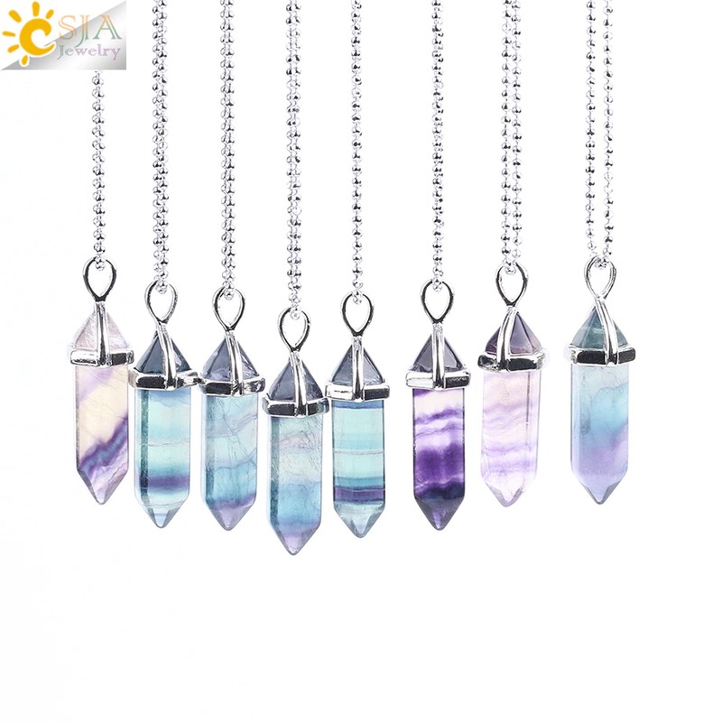 Csja فلوريت القلائد المعلقات الكريستال تعليق جوهرة الحجر الطبيعي الكوارتز رصاصة سداسية البندول الريكي شقرا Pendulo E546
