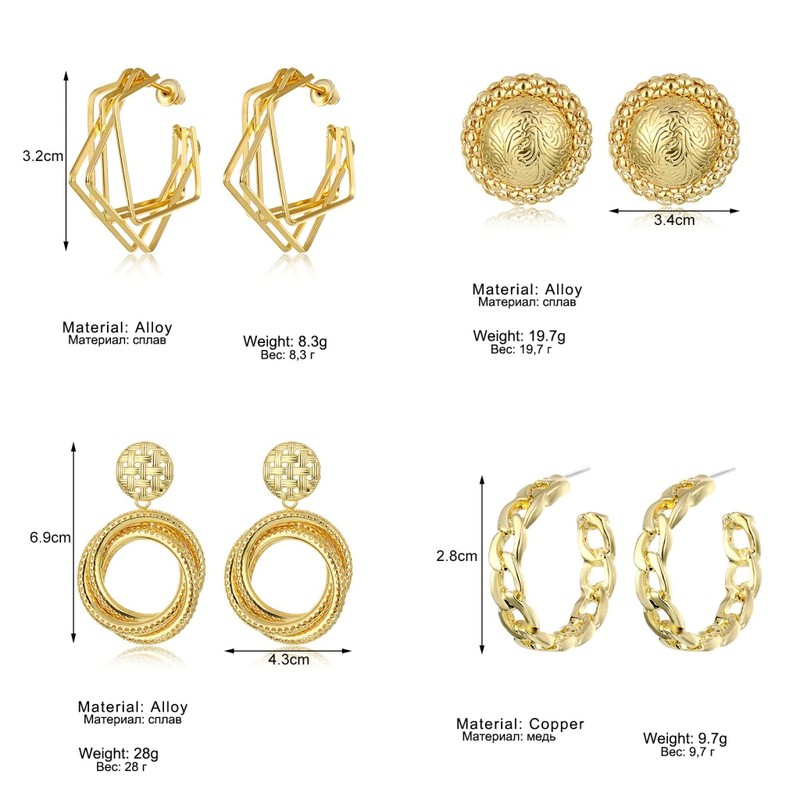 Fnio موضة خمر أقراط للنساء بيان هندسي كبير الذهب معدن إسقاط أقراط أحدث العصرية خواتم مجوهرات اكسسوارات
