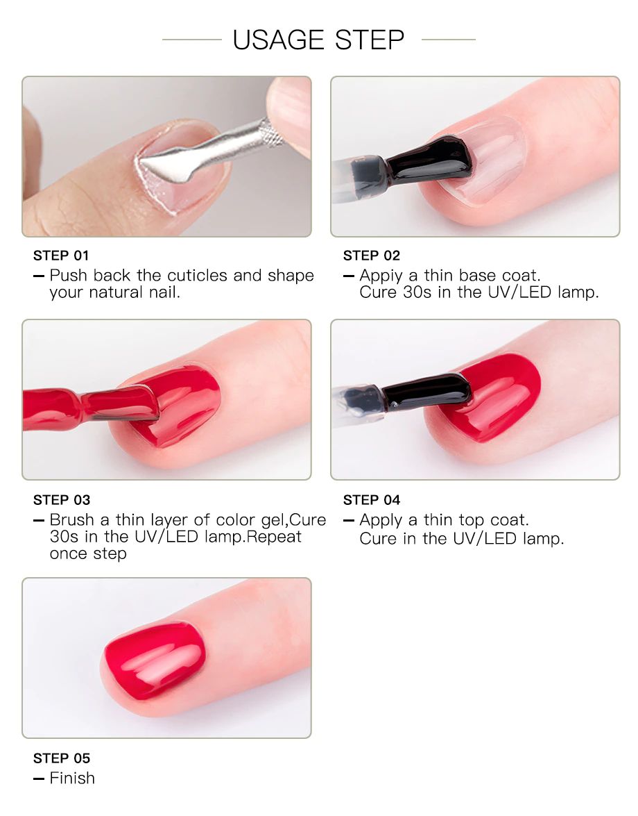 -2. تطبيق معطف قاعدة من الأساس من بشرة إلى الحافة الحرة (تذكر لإغلاق حافة الظفر). علاج الأظافر تحت مصباح ليد لمدة 10 ثانية أو ضوء الأشعة فوق البنفسجية لمدة 2 دقيقة.