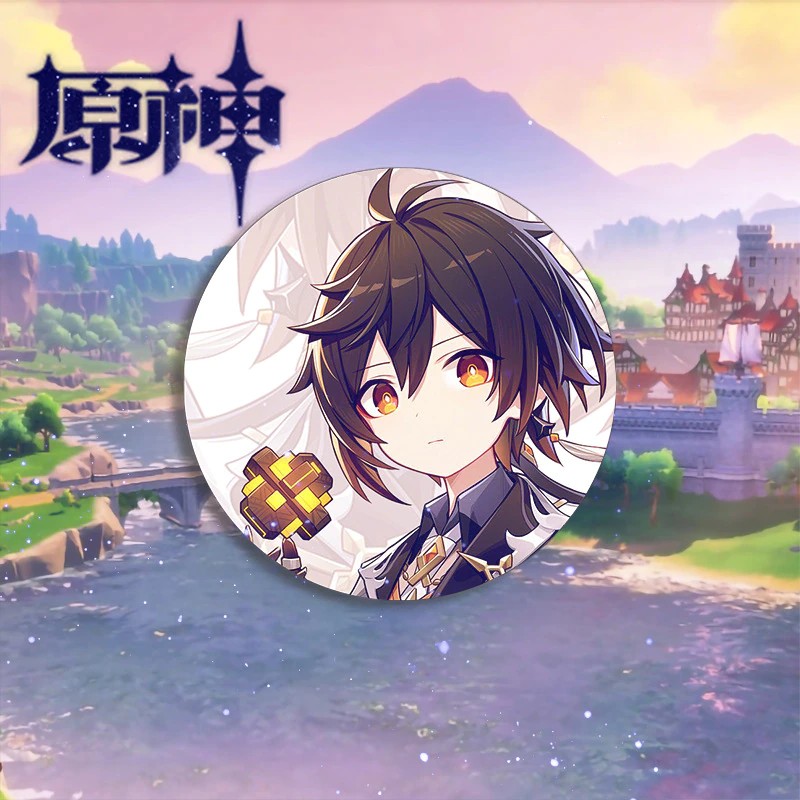 دبوس زينة على الظهر من Genshin بتصميم إمباكت شياو هوتاو ريدن شوغون غانيو كيتشينغ دبوس زينة زينة على الظهر للملابس