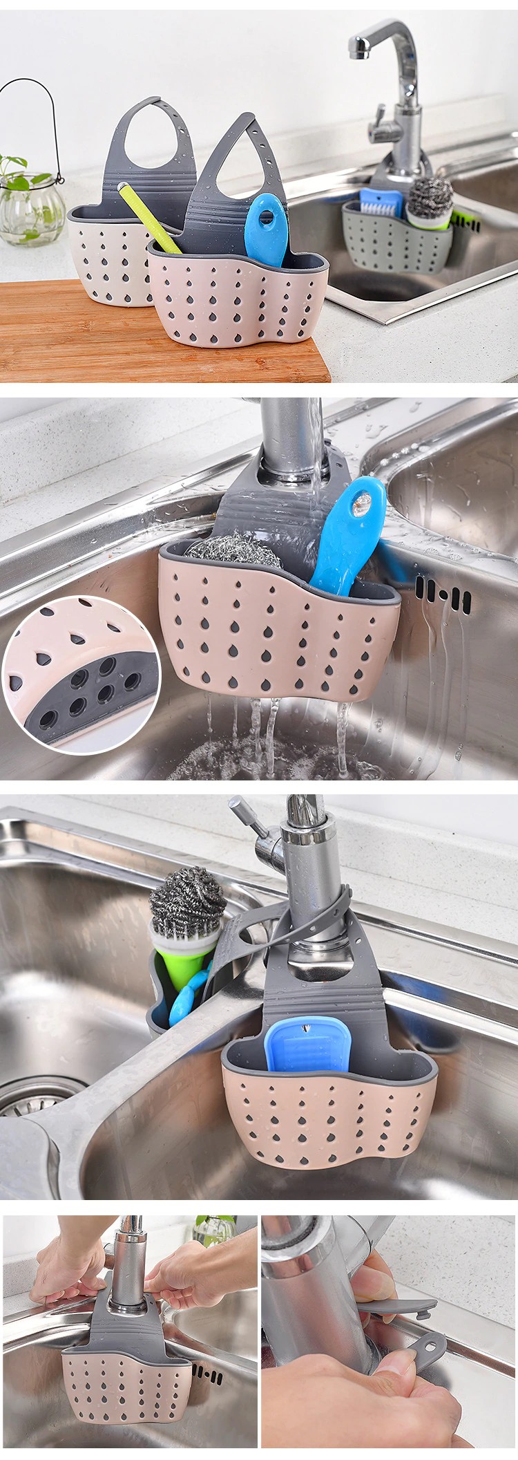 المنزل تخزين استنزاف سلة المطبخ بالوعة حامل قابل للتعديل الصابون الإسفنج Shlf معلقة استنزاف سلة حقيبة اكسسوارات المطبخ