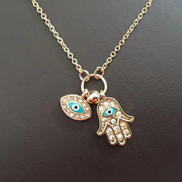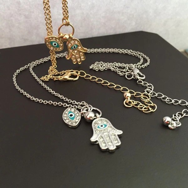 Hot البيع Vintage العربية كريستال الشر عيون و همسة اليد المعلقات قلادة ماركة الحظ فاطمة اليد الذهب سلسلة بيان قلادة