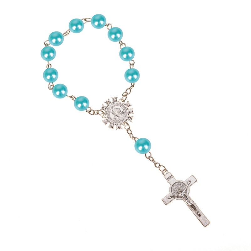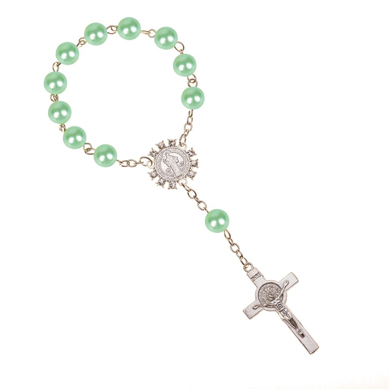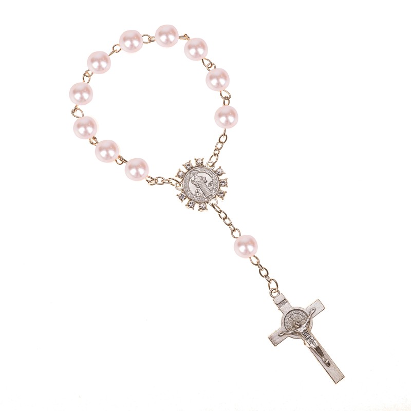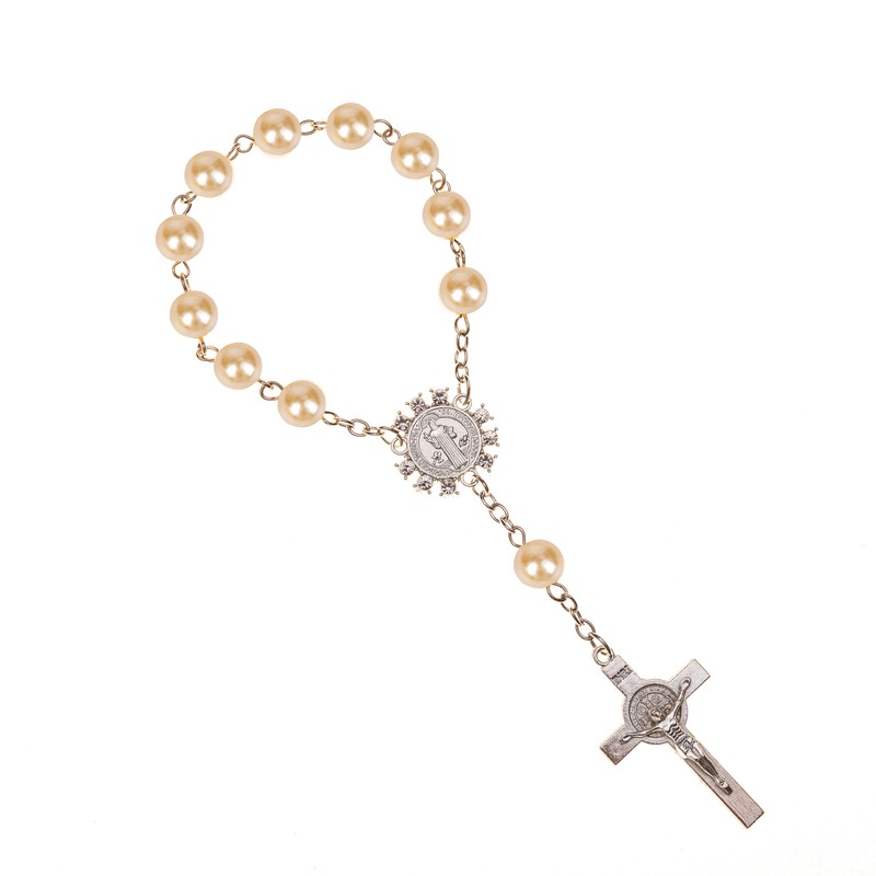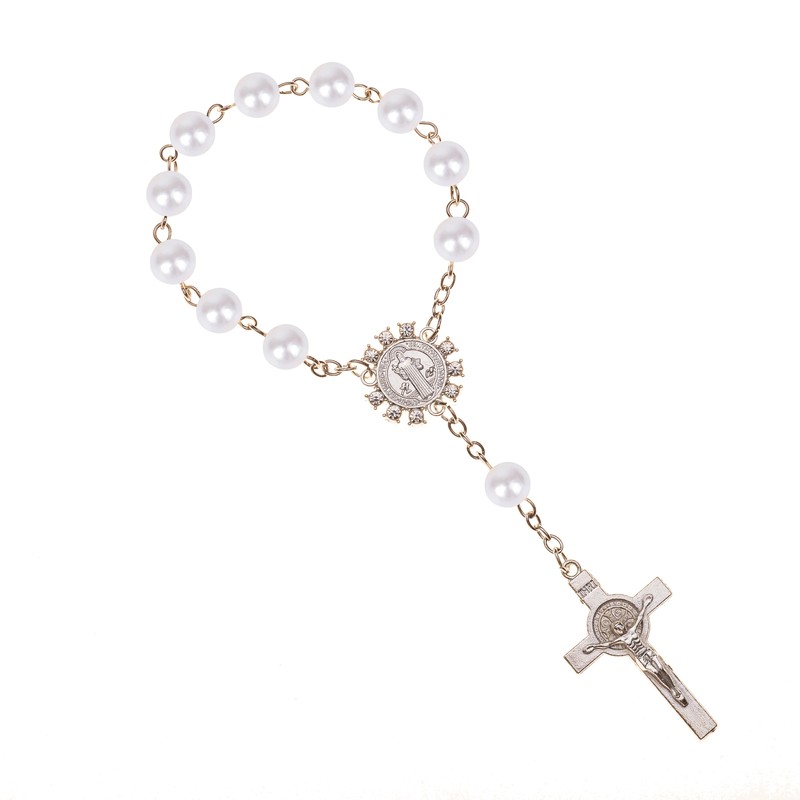 تقليد حبات اللؤلؤ مسبحة كاثوليكية الكاثوليكية المقدسة بالتواصل فضية اللون أجنحة الصليب المعلقات سوار هدية لطيفة