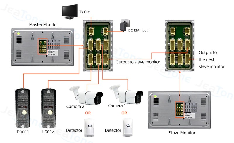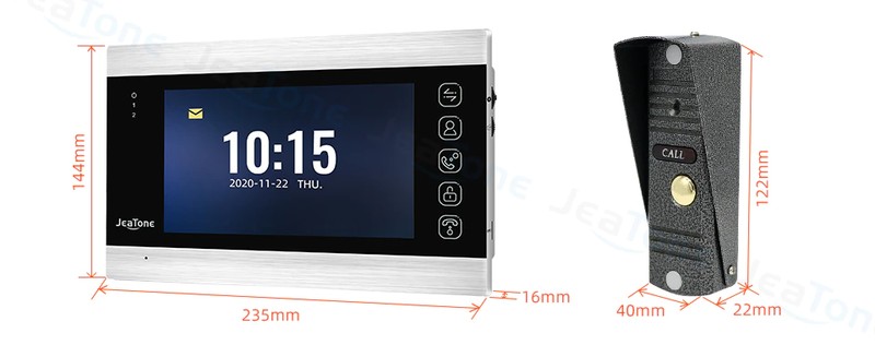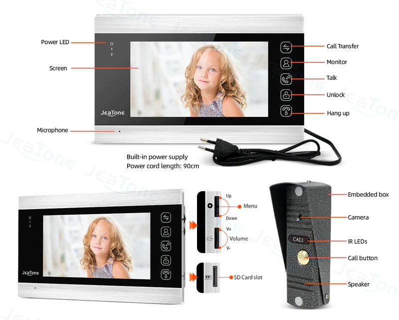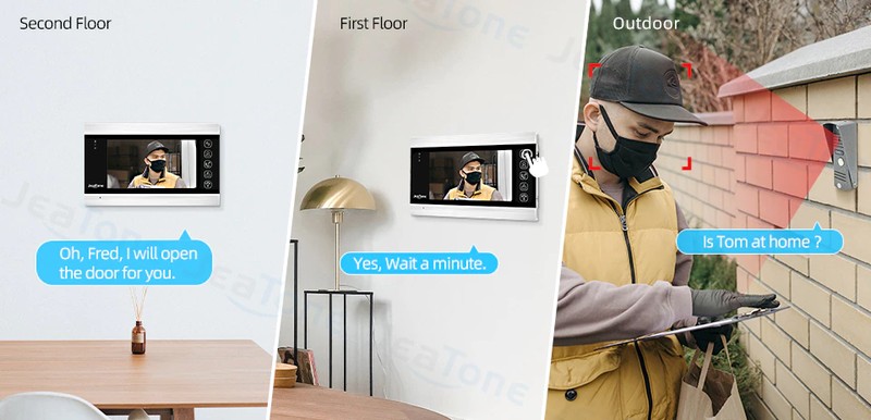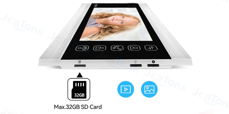 مع JeaTone 7 "السلكية نظام الفيديو باب الهاتف ، يمكن للزوار استخدام المكالمات لوحة ، ثم يمكنك استخدام رصد داخلي فتح والرصد والتقاط الصور وتسجيل الفيديو.