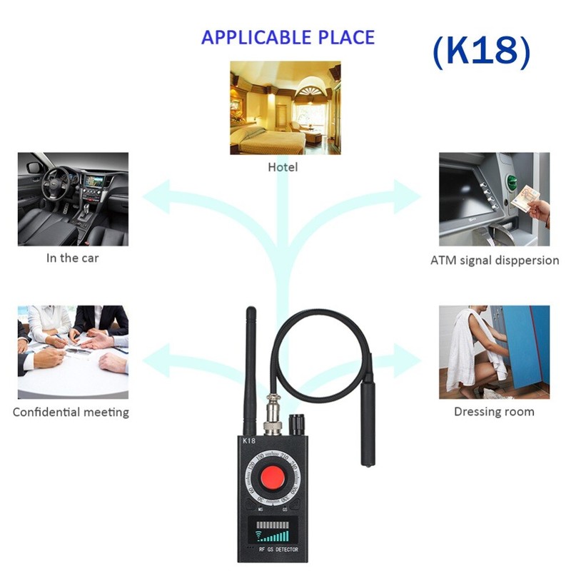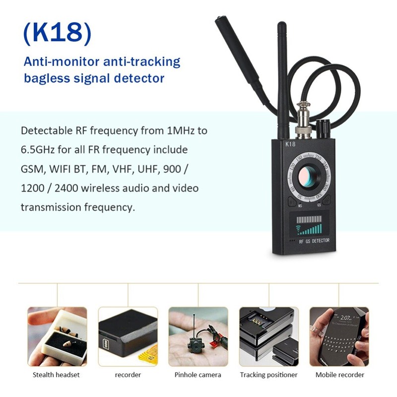 كاشف الكاميرا متعدد الوظائف K18 ، 1 ميجاهرتز-6.5 جيجاهرتز ، Gsm مستشعر علة الصوت عدسة إشارة Gps تعقب Rf ، ماسح ضوئي للكشف عن الراديو