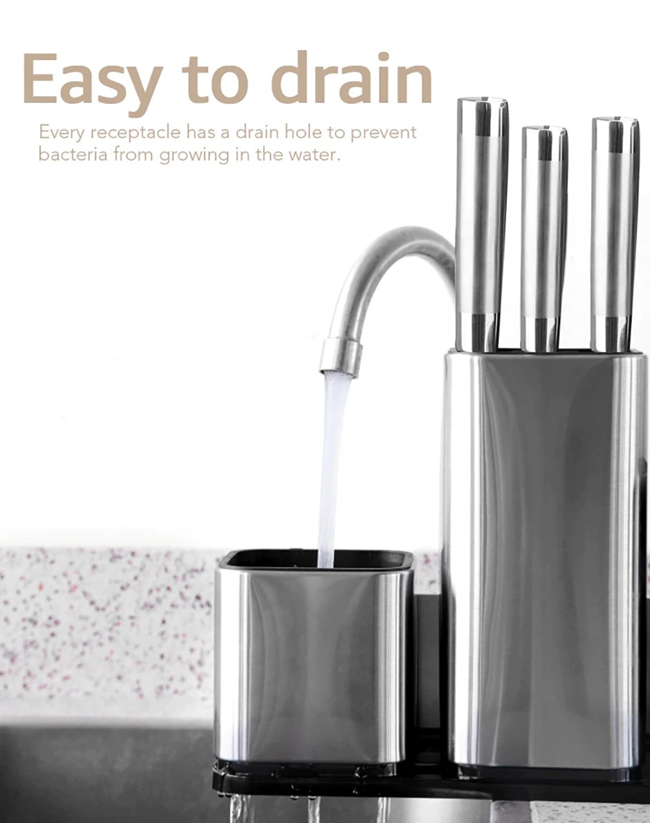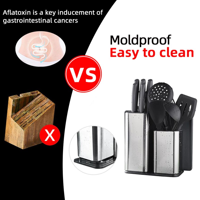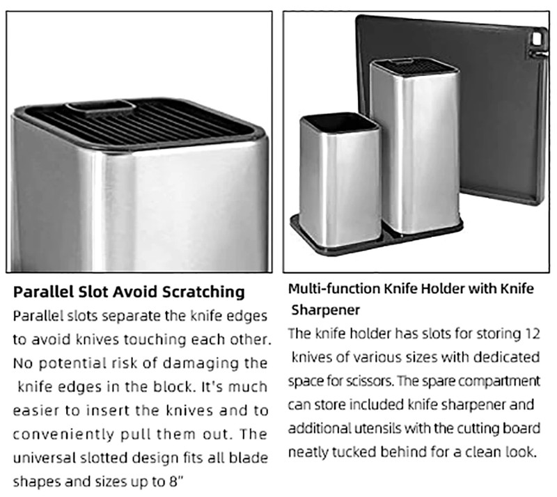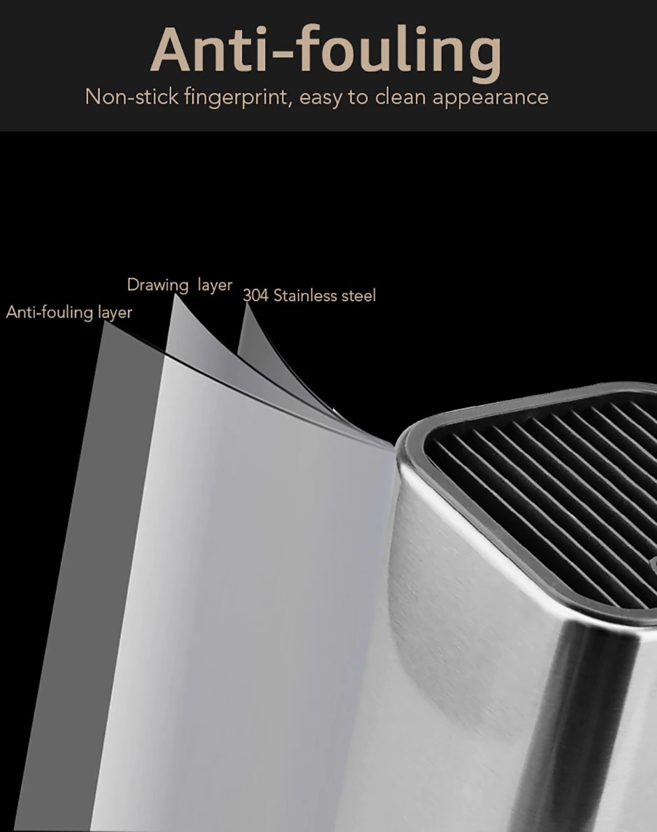 التصميم العملي:صخرة لإحماء السكين من الفولاذ المقاوم للصدأ لها خصائص مضادة للبكتيريا. منظم السكاكين هذا يمكن أن يصلح شفرات تصل إلى 8 بوصة طويلة.