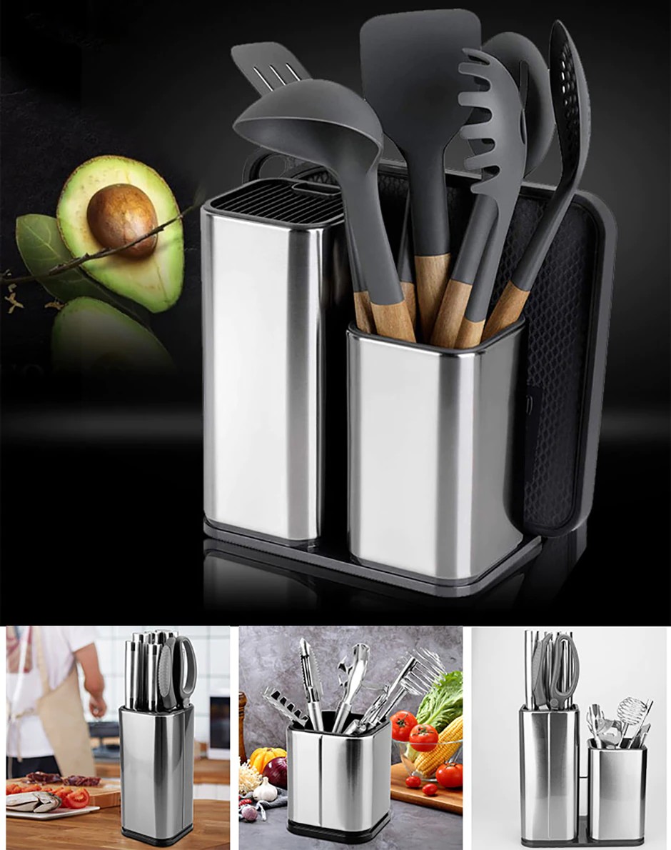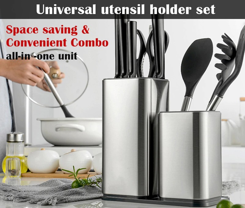 مايفيت حامل سكين احترافي وحامل أواني-ستانلس ستيل بتصميم مستطيل عصري عالمي صخرة لإحماء السكين ومنظم أواني المطبخ