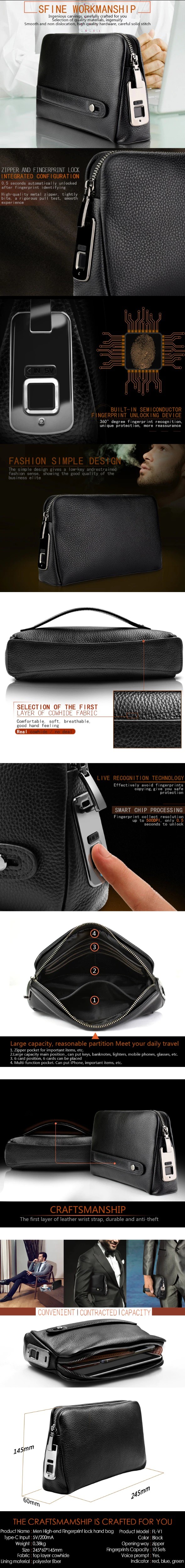 الرجال بصمة حقائب للرجال الجلود حقيبة اليد الذكور طويلة المال محافظ الهاتف المحمول الحقيبة الرجال حقيبة ساعي مكافحة سرقة المحافظ