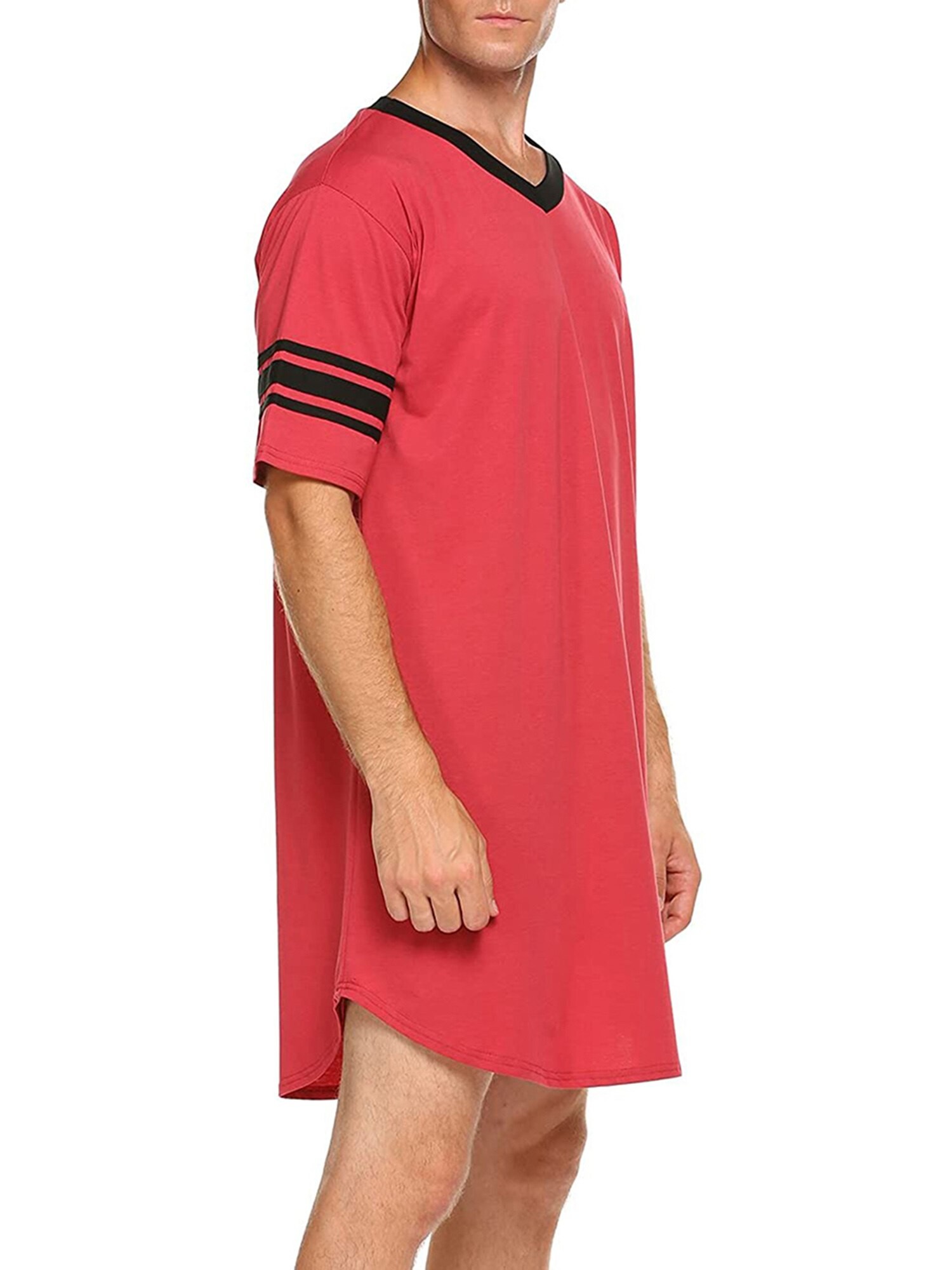 قميص نوم رجالي قطني ، قميص نوم بأكمام قصيرة برقبة على شكل V ، ملابس نوم فضفاضة ومريحة ، للمنزل