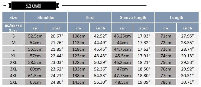 الحجم: S ، M ، L ، XL ، 2XL ، 3XL ، 4XL ، 5XL