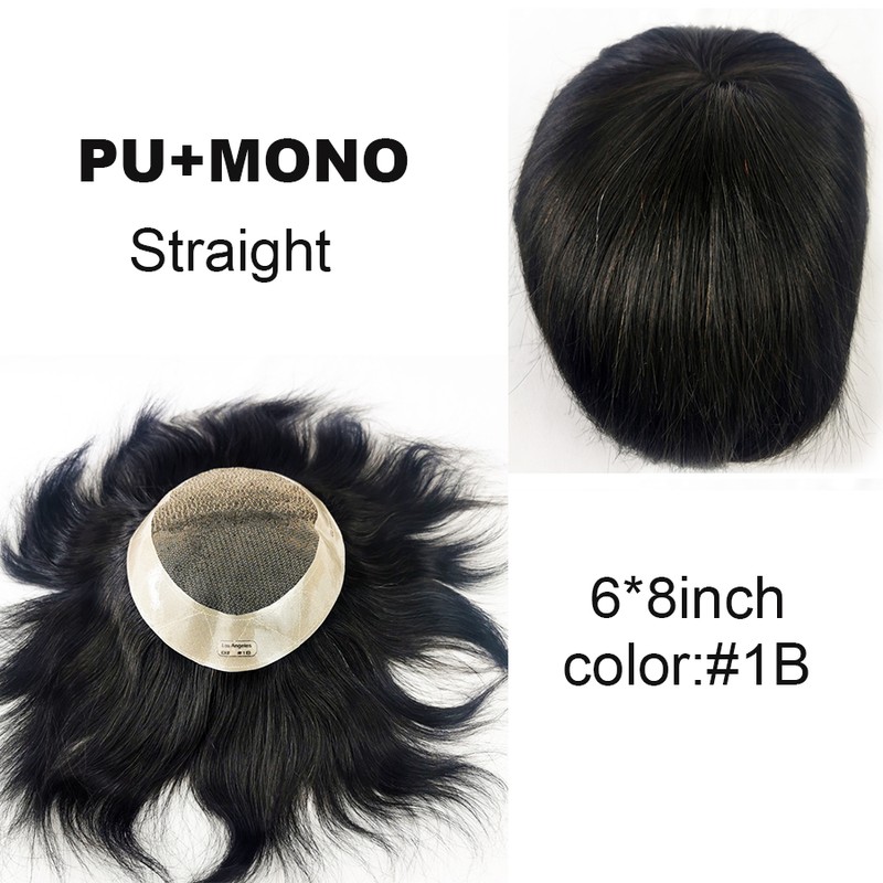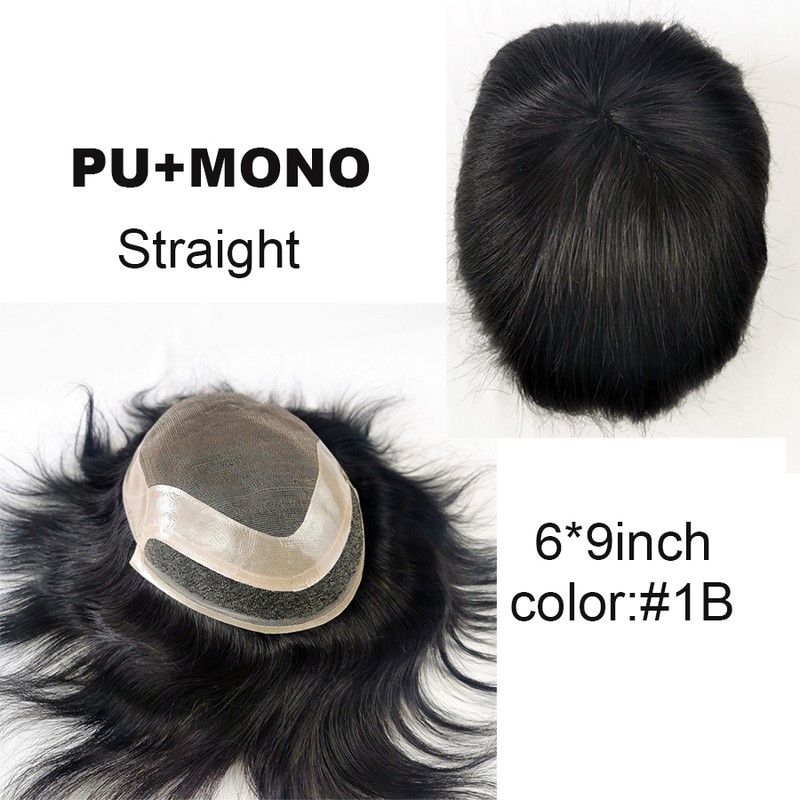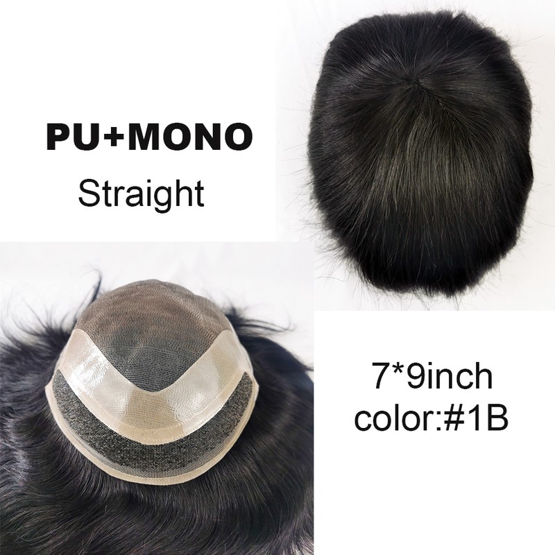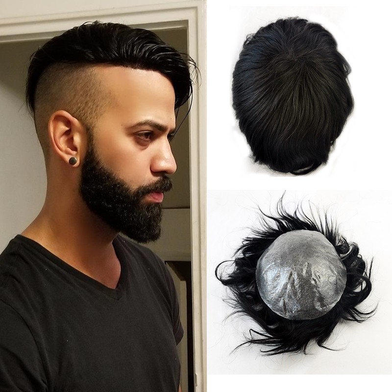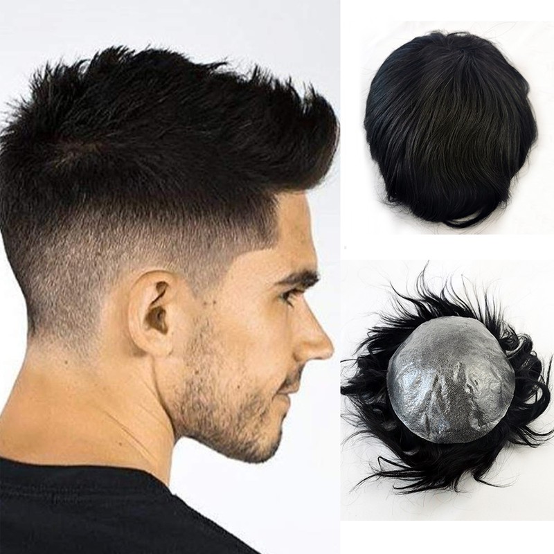 اسم Toupee: Men Toupee Black Hair 100 ٪ Human Hair Remy Hair