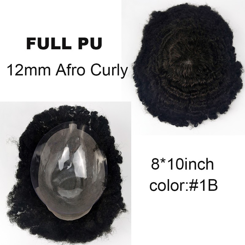 الرجال الشعر المستعار شعر أسود 100% خصلات الشعر المستعار شعر ريمي نظام استبدال الرجال هيربيسي مستعار كامل 8X10 بوصة رجل شعر مستعار مجعد