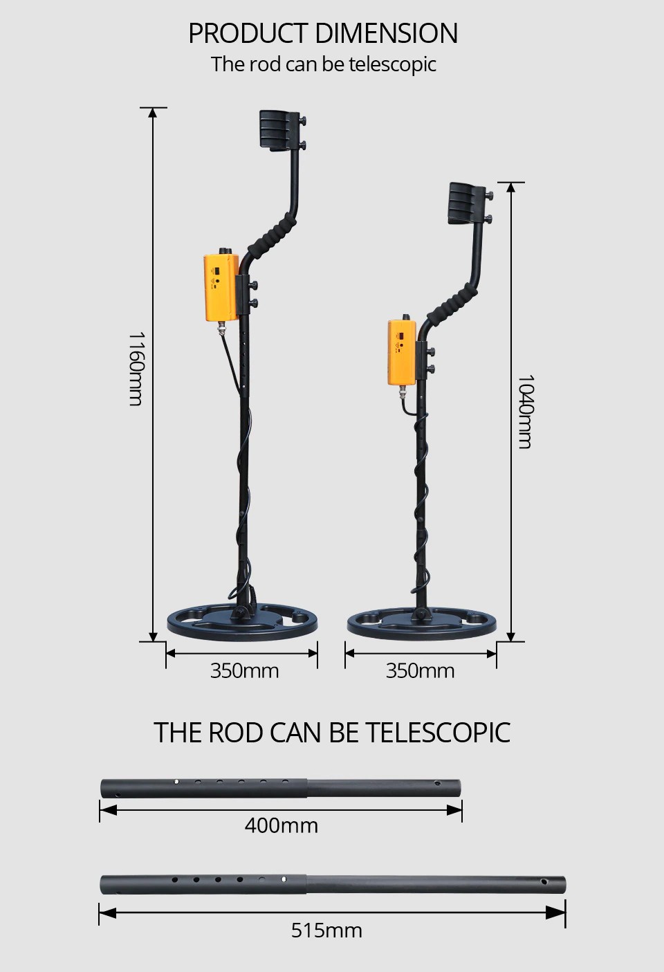 3. ارتفاع قابل للتعديل للكشف عن المعادن ، مع توازن الأرض والاعتراف بأوضاع الاستكشاف.